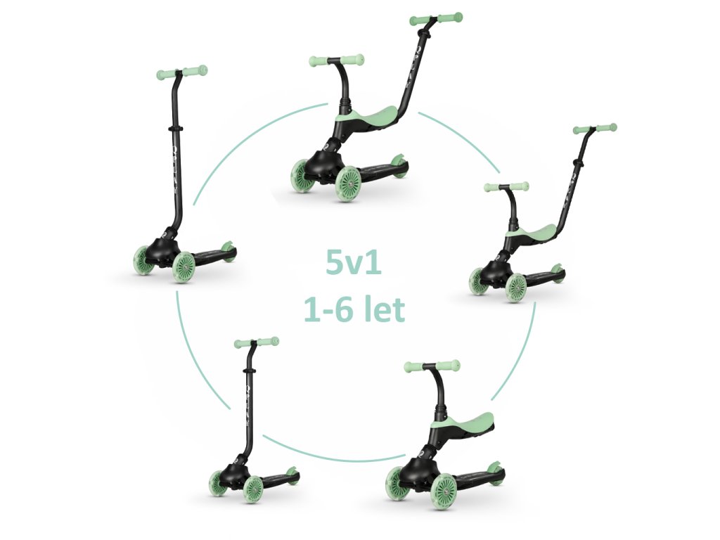 QPLAY Kolobežka / odrážadlo Sema Evo s LED svetlami Jade Green, vek 1 - 6 rokov, do 50 kg