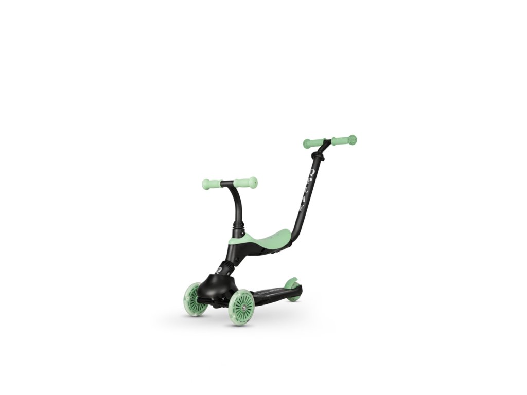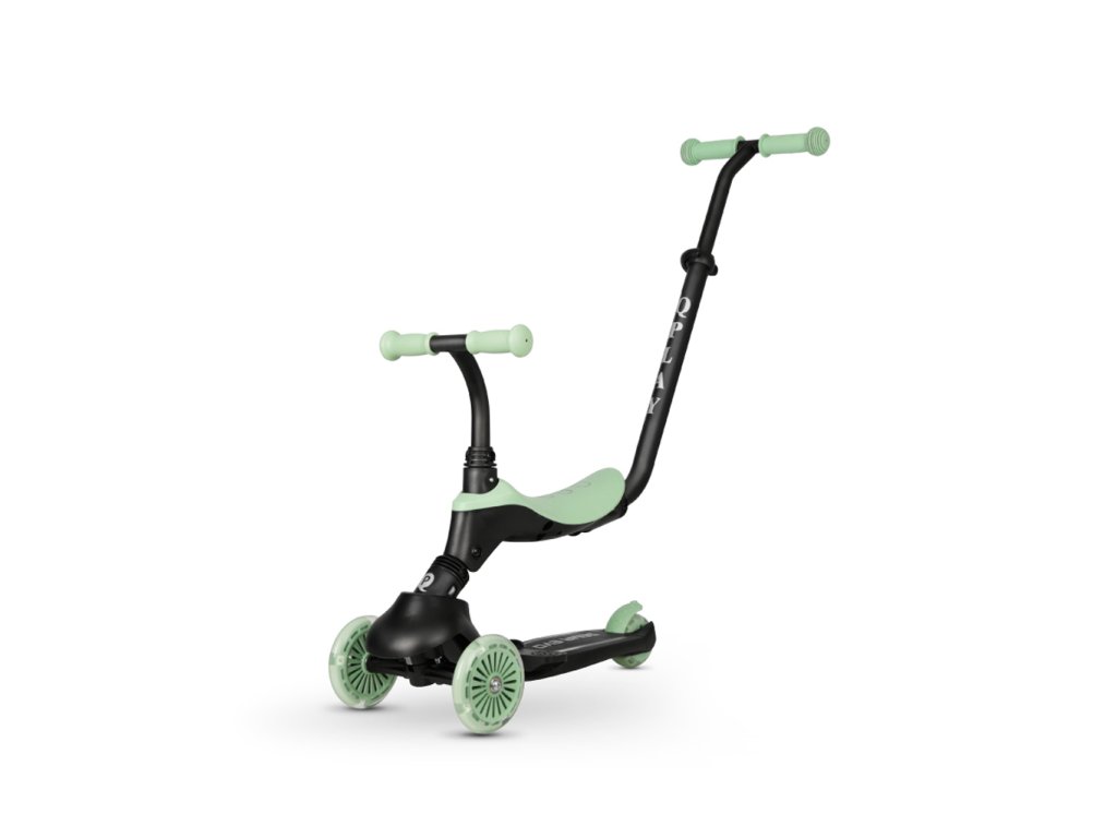 Riadidlá a sedadlo rodiča sú odnímateľné a môžu sa používať ako normálna kolobežka pre deti do 50 kg