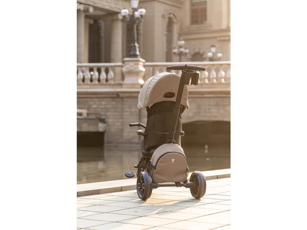- Praktická odnímateľná taška – Na trojkolke je pripevnená odnímateľná taška, ktorá poskytuje dostatok miesta na nákupy alebo detské potreby počas prechádzok.