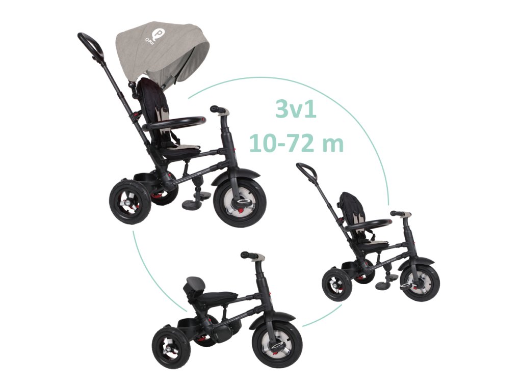 QPLAY Trojkolka Rito air gel (Rubber) Grey, vek 10-72 mesiacov