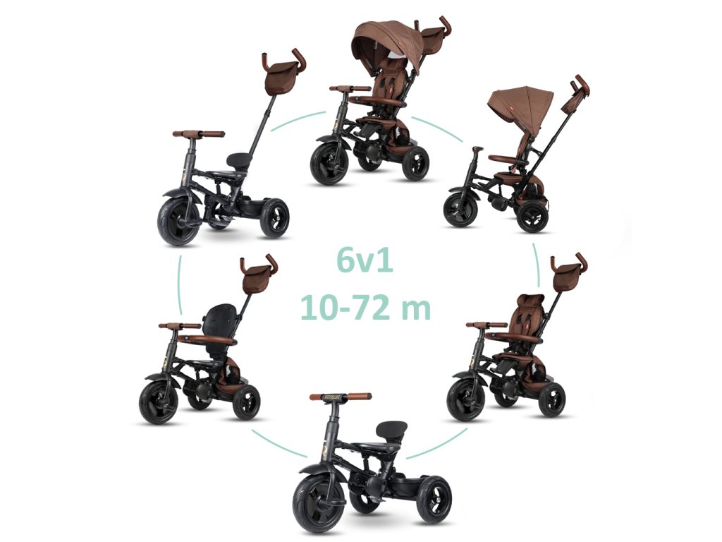 QPLAY Trojkolka Rito Deluxe Brown, 6 v 1, vek 10-72 mesiacov
