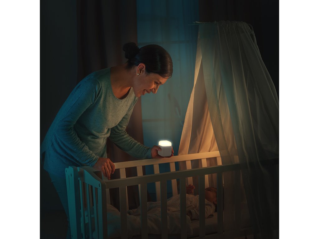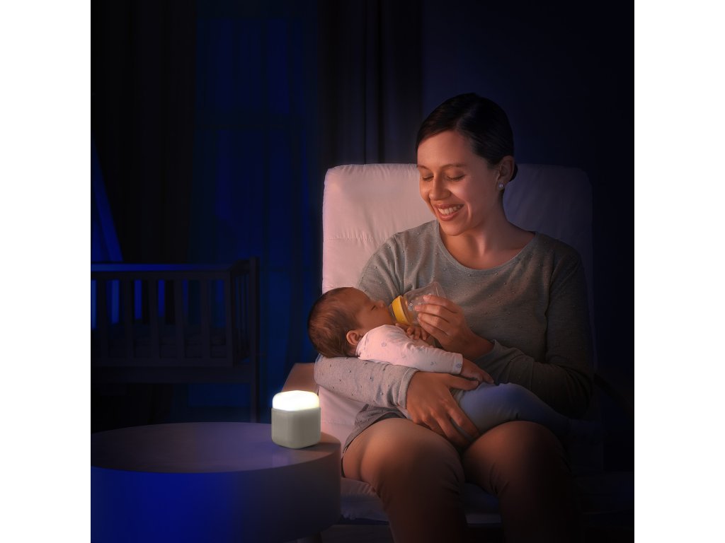 Díky 2 různým úrovním jasu poskytuje noční světlo vždy tolik světla, kolik je potřeba. Měkké světlo vytváří uklidňující atmosféru, aniž by nerušilo spánek. Poskytuje vám také dostatek světla pro kojení nebo noční přebalování. Jasnější nastavení vytváří ideální světelné podmínky pro hraní her nebo čtení.
