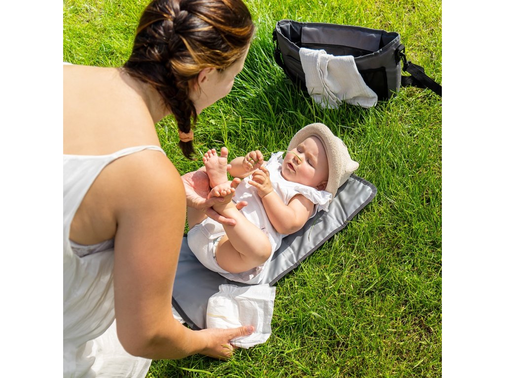 Pokud cestujete na delší dobu, budete nakonec muset miminko přebalovat. Přestože existují veřejné přebalovací stanice, nechcete své miminko jen tak položit na cizí přebalovací podložku. Abyste mohli miminko hygienicky přebalovat, když jste venku,