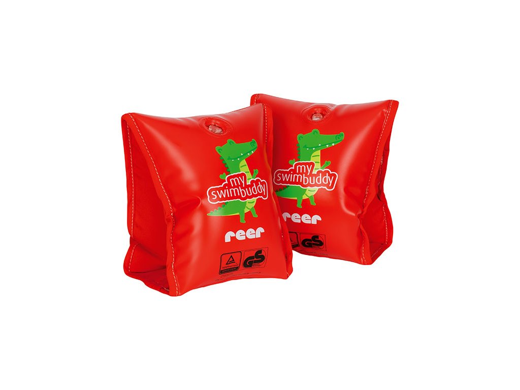 Plavací rukávky MySwimBuddy jsou vyrobeny z extra silného PVC (0,3 mm) a doplněné látkovou vložkou vyrobenou z 98 % polyesteru 2 % elastanu. To nabízí výjimečnou odolnost a bezpečnost. Červená barva vytváří poutavý vzhled a také zvyšuje viditelnost ve vodě.