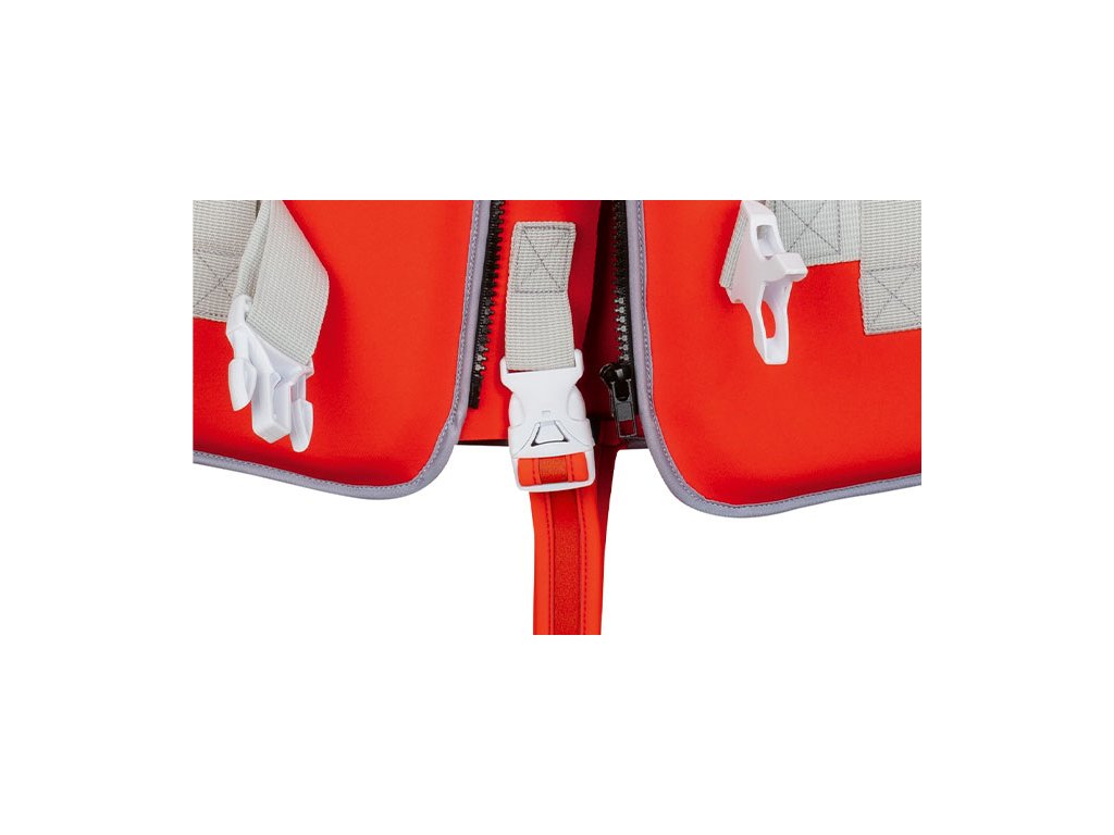 Vesta je vybavena praktickým zipem, který je navíc zajištěn krytkou na suchý zip. Tato konstrukce chrání zip před náhodným otevřením a zajišťuje bezproblémové a bezpečné uchycení při plavání.