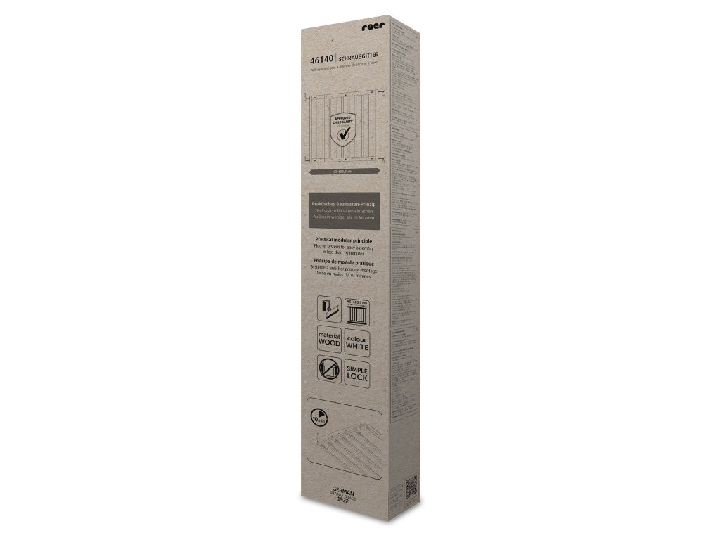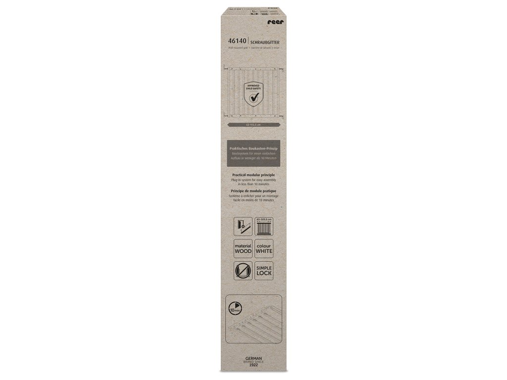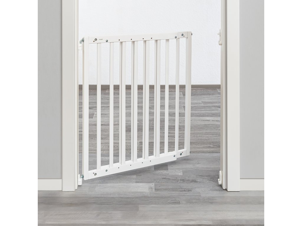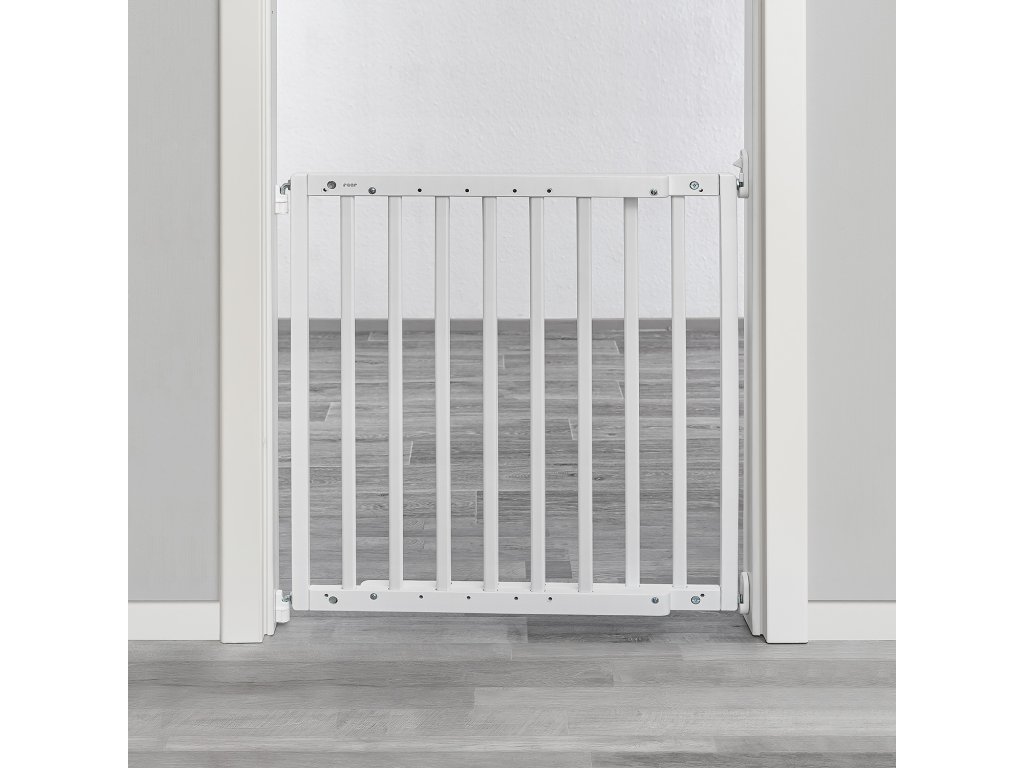 Zábrana má praktický modulární princip: snadná montáž za méně než 10 minut díky zásuvnému systému. Bezbariérový průchod bez nebezpečí zakopnutí: ideální pro použití i na schodech. Šířka plynule nastavitelná od 63-103,5 cm. Dvojitý uzamykací systém. Lze pohodlně otevřít v obou směrech; vč. nástěnné desky se zátkou. Lze flexibilně použít jako dveřní nebo schodišťovou zábranu. Zvláště udržitelné: malá a praktická velikost balení chrání životní prostředí díky o 60 % méně odpadu z obalů.