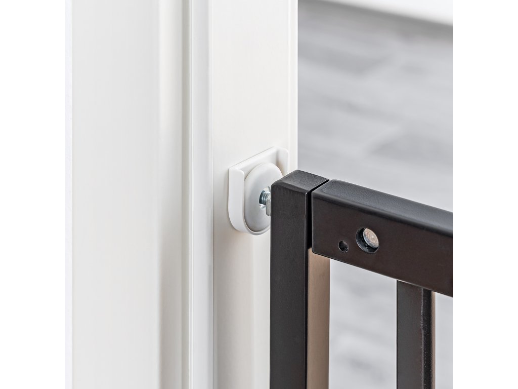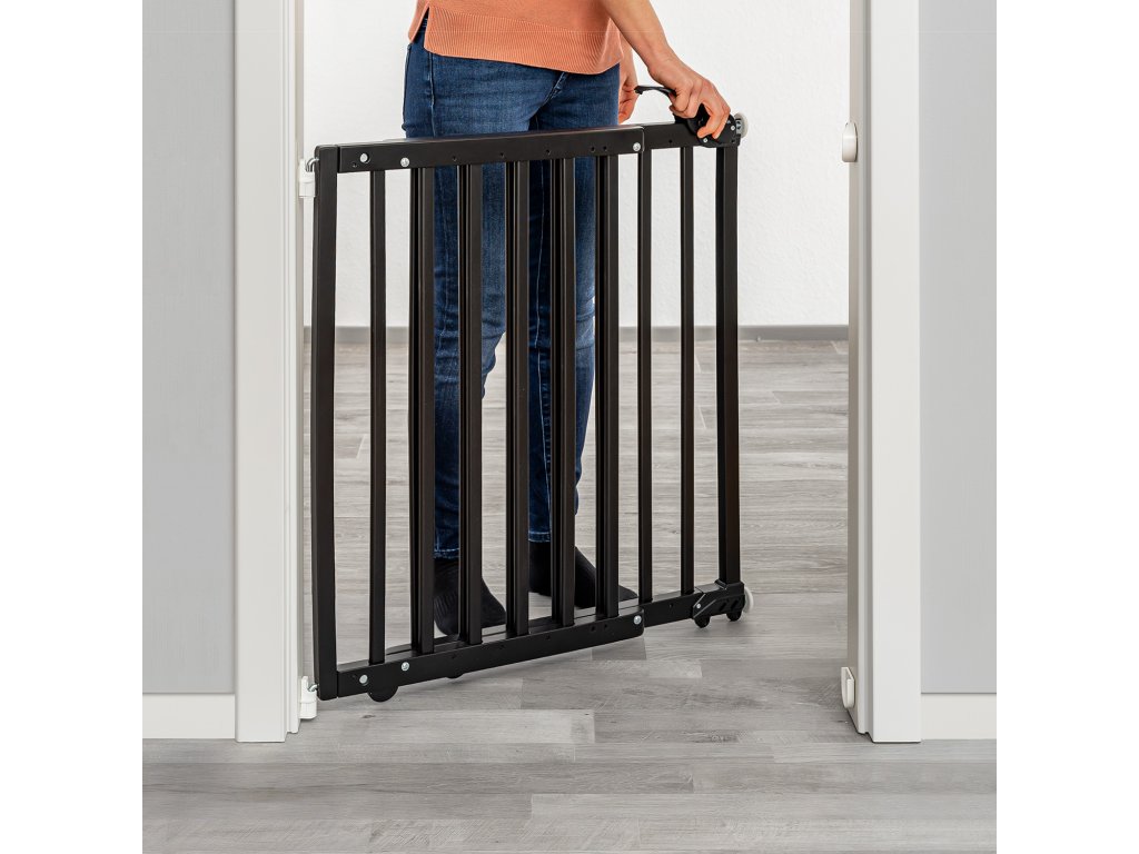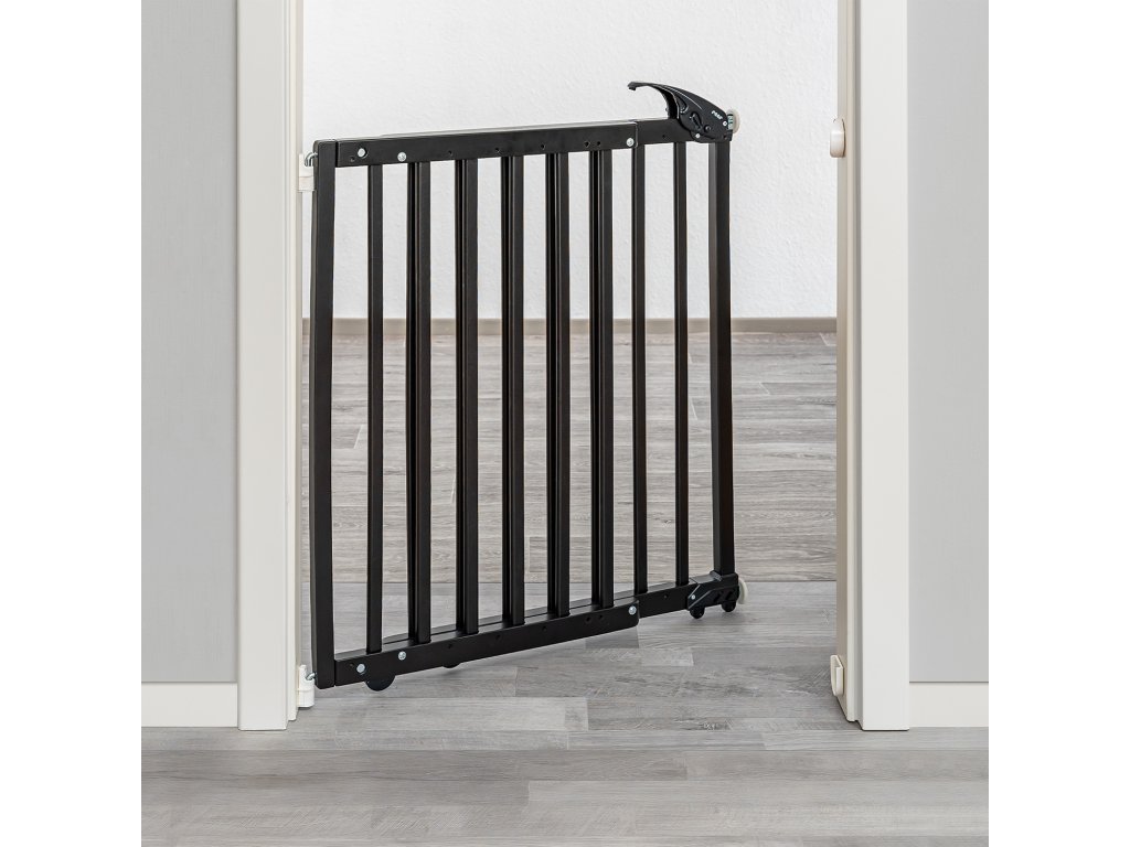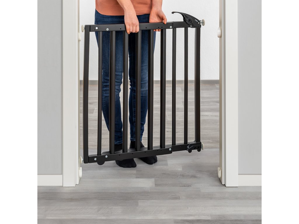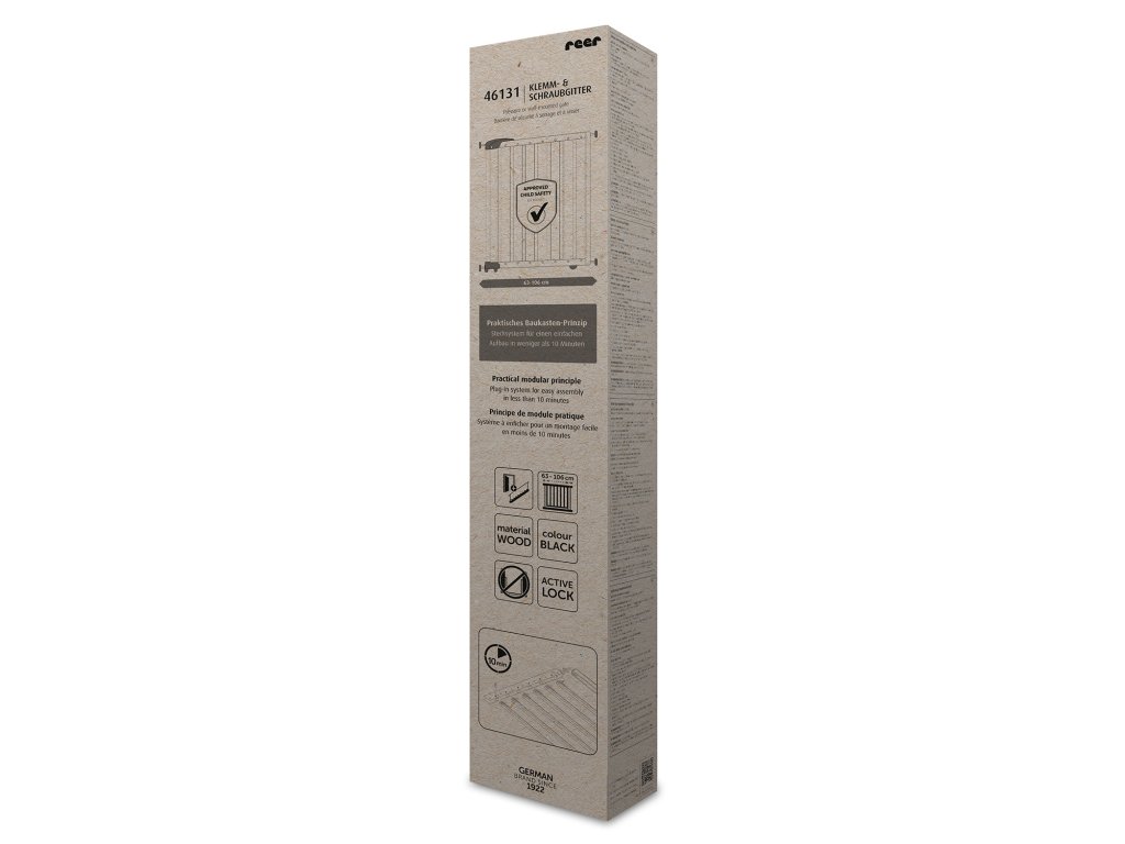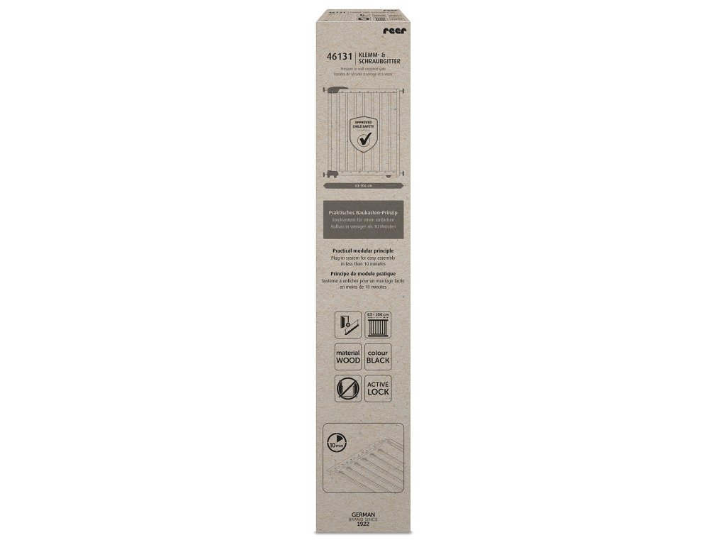 Praktický modulární princip: snadná montáž za méně než 10 minut díky zásuvnému systému. Zvláště udržitelné: malá a praktická velikost balení chrání životní prostředí díky o 60 % méně odpadu z obalů. 2 možnosti montáže: nasazením nebo šroubováním. Bezbariérový průchod bez nebezpečí zakopnutí: ideální pro použití i na schodech. Šířka plynule nastavitelná od 63-106 cm. Dvojitý uzamykací systém. Lze pohodlně otevřít v obou směrech; vč. nástěnné desky se zátkou Lze flexibilně použít jako dveřní nebo schodišťovou zábranu.
