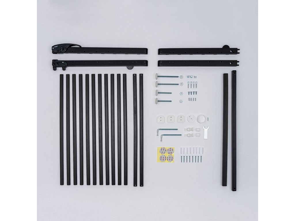 Tlaková a šroubovací bezpečnostní zábrana je dodávána jako sada, kterou si můžete sami sestavit. To znamená, že jeho balení je mnohem menší než u běžných bezpečnostních bran. Stavebnice ušetří až 60 % obalového odpadu a přispívá tak k ochraně životního prostředí.