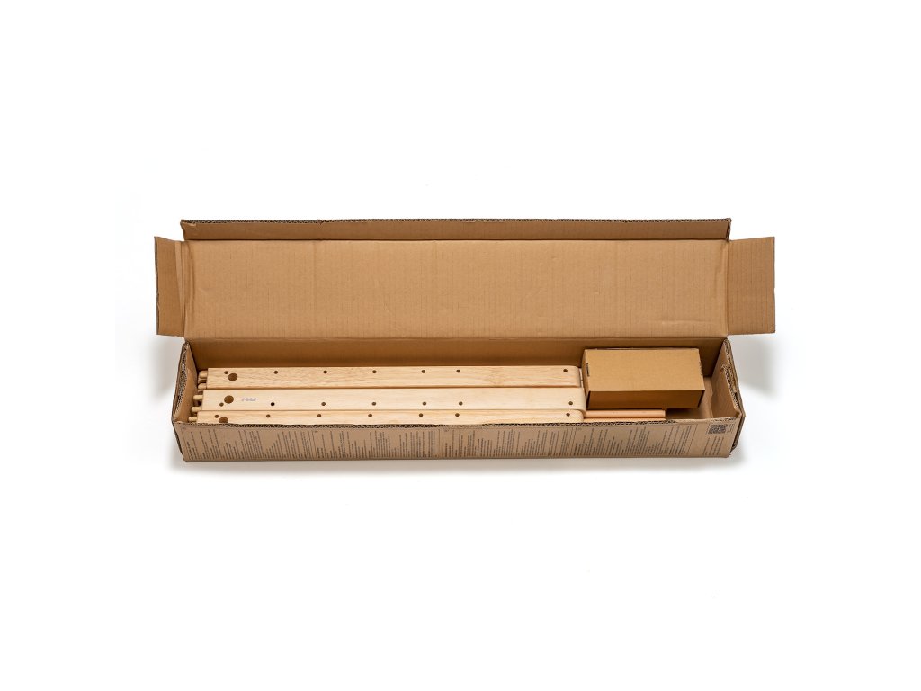 Tlaková a šroubovací bezpečnostní zábrana je dodávána jako sada, kterou si můžete sami sestavit. To znamená, že jeho balení je mnohem menší než u běžných bezpečnostních bran. Stavebnice ušetří až 60 % obalového odpadu a přispívá tak k ochraně životního prostředí.