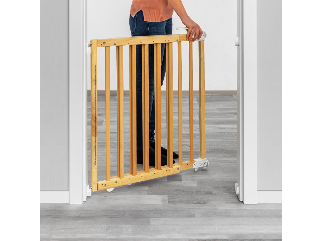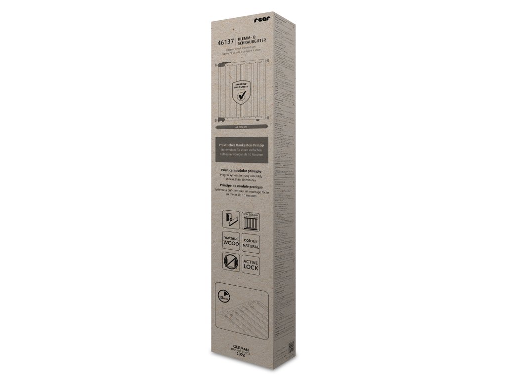 Praktický modulární princip: snadná montáž za méně než 10 minut díky zásuvnému systému. Zvláště udržitelné: malá a praktická velikost balení chrání životní prostředí díky o 60 % méně odpadu z obalů. 2 možnosti montáže: nasazením nebo šroubováním. Bezbariérový průchod bez nebezpečí zakopnutí: ideální pro použití i na schodech. Šířka plynule nastavitelná od 63-106 cm. Dvojitý uzamykací systém. Lze pohodlně otevřít v obou směrech; vč. nástěnné desky se zátkou Lze flexibilně použít jako dveřní nebo schodišťovou zábranu.