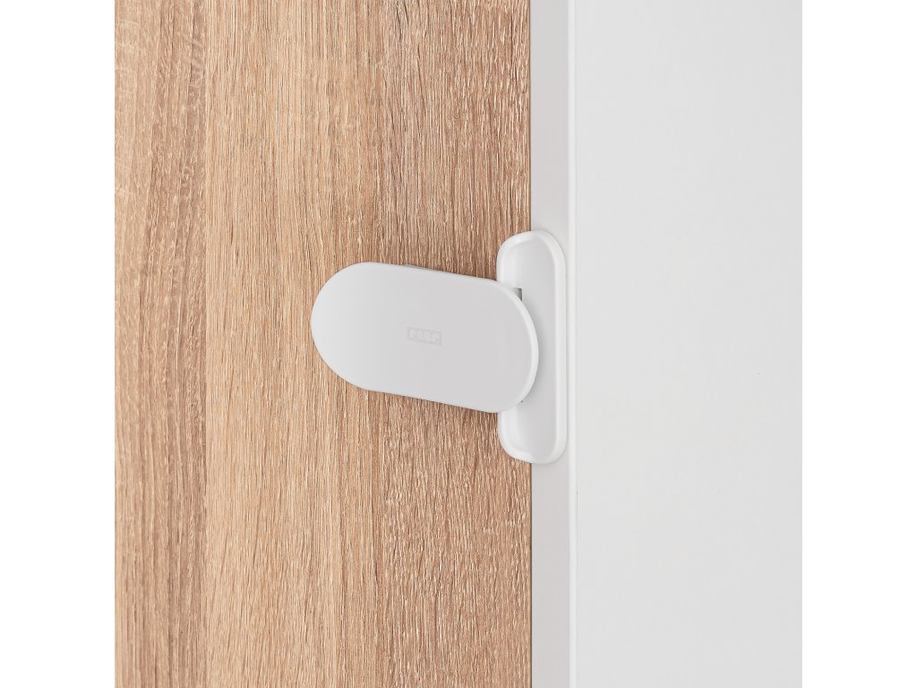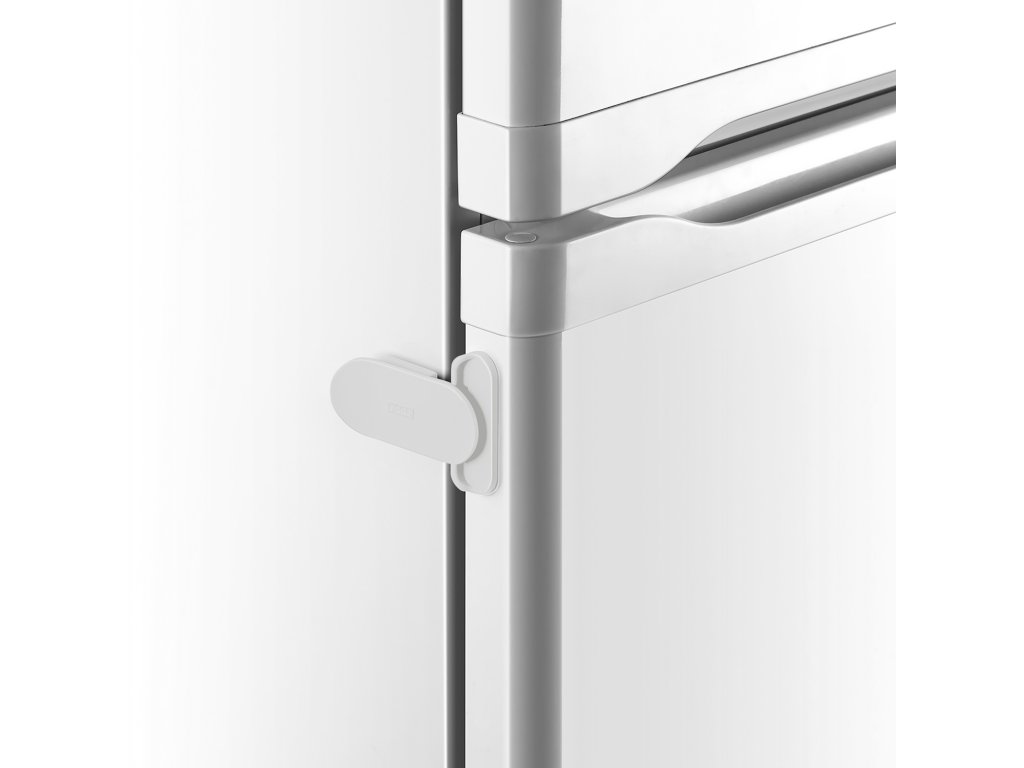Díky zámku jsou lednice a další podobné spotřebiče bezpečně uzamčeny a nepřístupné pro malé průzkumníky. Pro dospělé je však lze snadno otevřít jednou rukou. Lištu stačí zatlačit zpět a dvířka lednice lze otevřít. Ochrannou lištu doporučujeme namontovat mimo dosah dětí.
