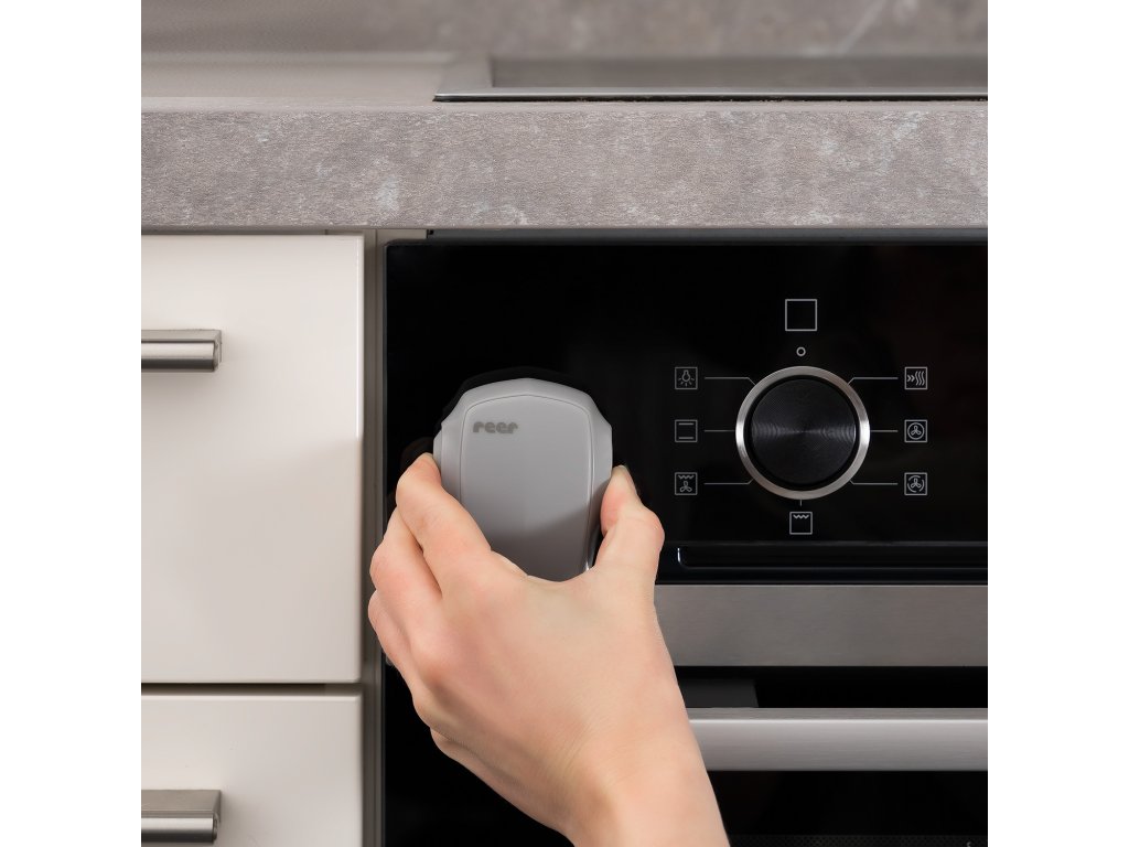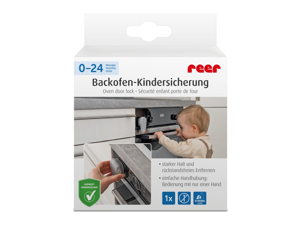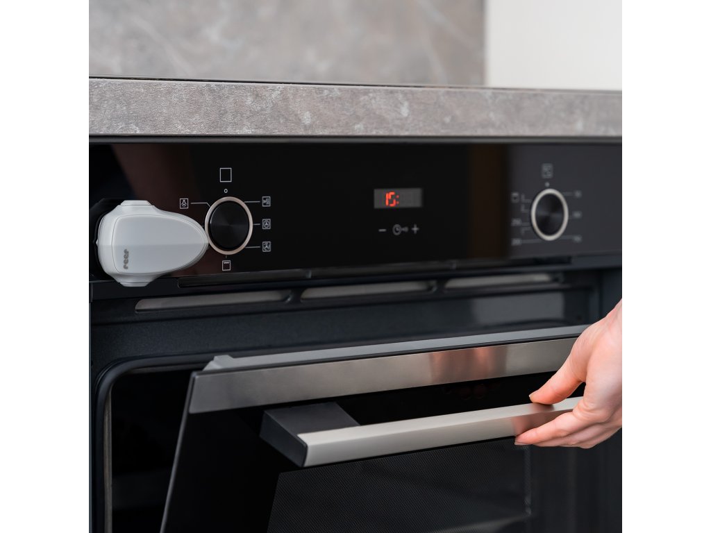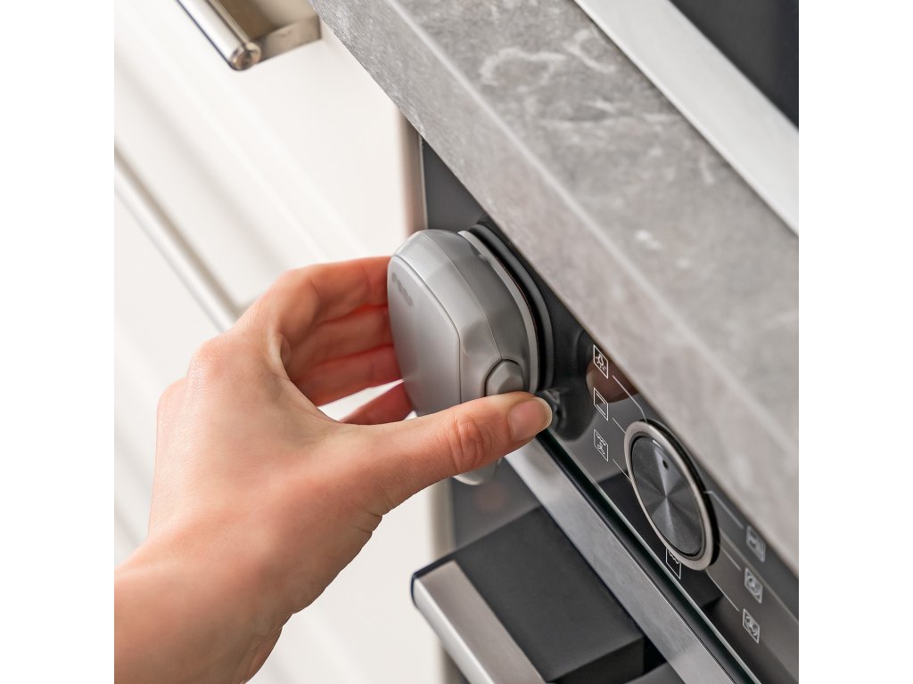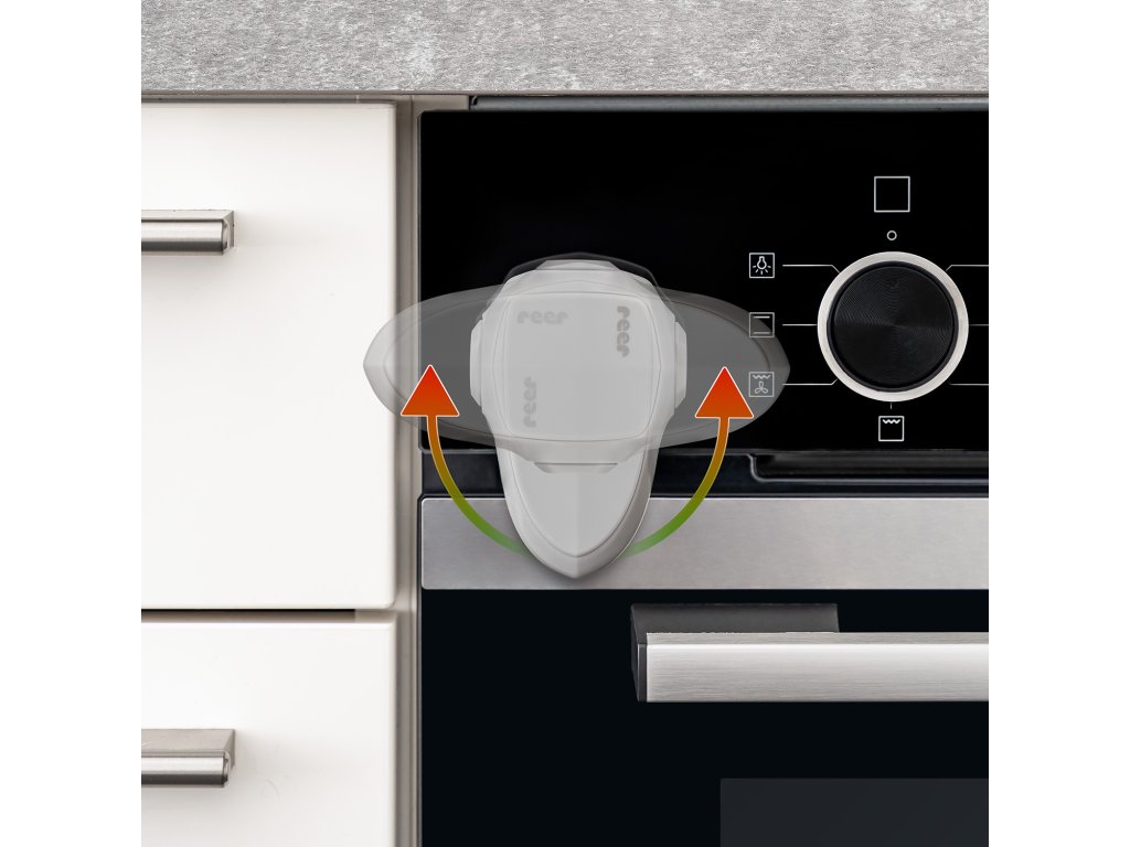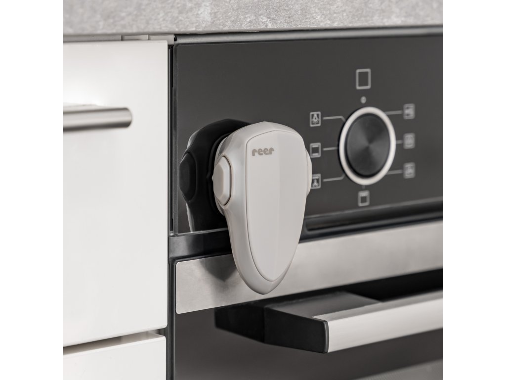 Bezpečnostní zámek na troubu, který ochrání vaše dítě před zraněním, Silné držení a odstranění beze zbytků, tepelně odolná lepicí páska. Snadné použití pro dospělé: ovládání pouze jednou rukou.