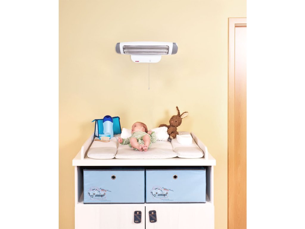 Nemusíte se bát pověsit zářič nad vaše dítě. Trubky zaříče jsou pokryty ochranou proti třískám. K miminku se dostane pouze teplo a vše ostatní zůstane v zářiči.