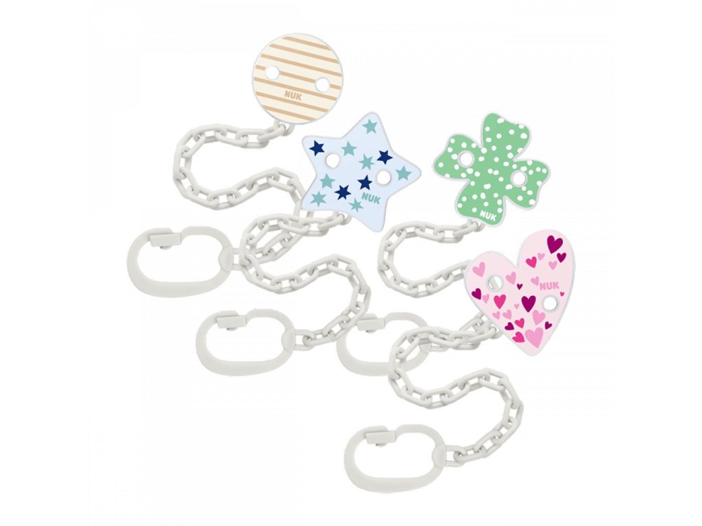 Veselá, farebná retiazka na cumlík NUK, je skvelým pomocníkom pre bábätká i rodičov. Nenahraditeľná zvlášť počas cestovania a prechádzok. Vďaka spone cumlík nespadne na zem a nezašpiní sa a nestratí sa. Má jednoduché použitie a je vyrobený tak, aby sa dal pripnúť k detskému oblečeniu. Pestré farby a veselé obrázky dieťa zaujmú. Určené pre deti od prvých dní života.