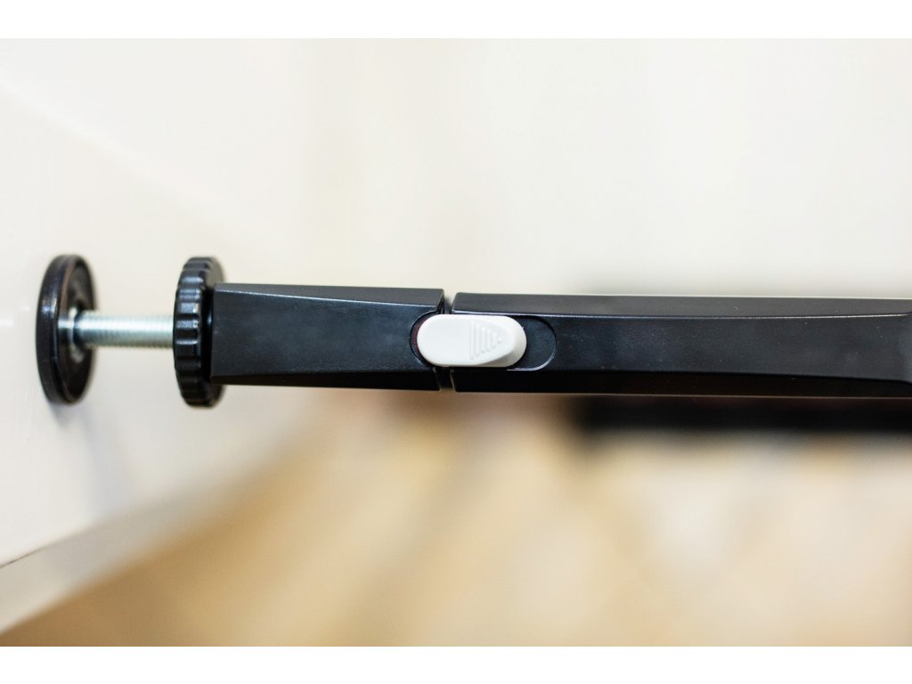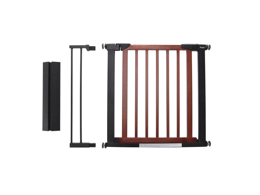 Pevný kovový rám v tvare písmena ,, U "umožňuje jednoduchú montáž rozoprením. Poskytuje mimoriadne široký priechod, ktorý neobmedzuje v pohybe. Zábranu možno ľahko namontovať bez vŕtania. Zábrana je určená pre otvory od 75cm do 82cm, pomocou rozšírenia, ktoré je súčasťou balenia, možno zábranu umiestniť do otvorov až do 96cm. Rampa, ktorá je taktiež súčasťou balenia, uľahčí priechod cez zábranu. Jednoduché otváranie jednou rukou uľahčí manipuláciu. Kovová konštrukcia v čiernej farbe v kombinácii s čerešňovým drevom povyšuje zábranu na dizajnový prvok. Spĺňa normu EN 1930: 2011 a ASTM F1004-13 a je vhodná pre použitie u detí do 24 mesiacov.
