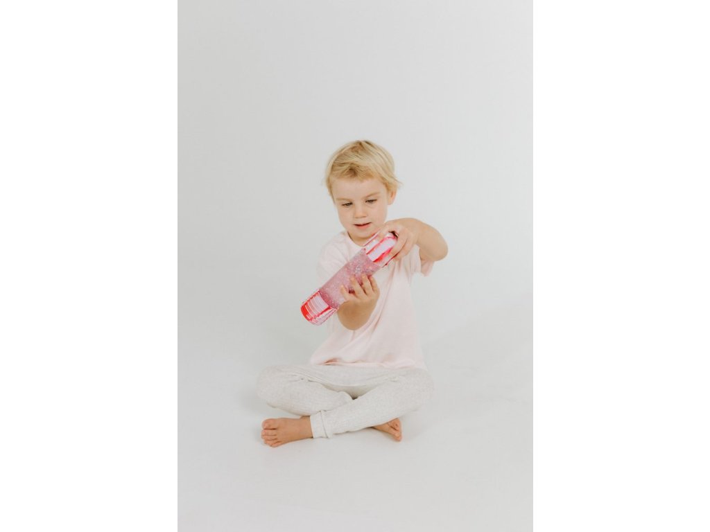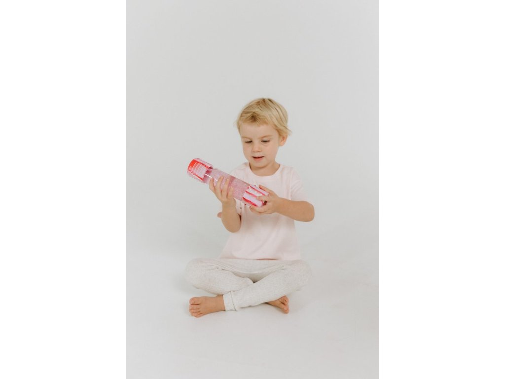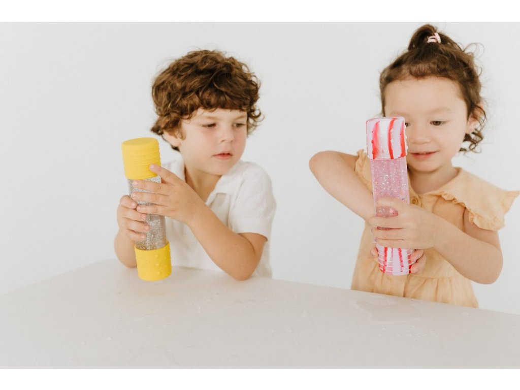 Unikátní senzorická láhev značky Jellystone Designs podporuje v dětech kreativitu, zájem o věc a koncentraci. Je tak vhodná především pro dětské povahy, co chvíli neposedí. Senzorická lahvičku poskytne mnoho možností využití od pozorování třpytivé magie až po zkoumání různých textur na silikonových uzávěrech – každá chvíle hry s touto uklidňující senzorickou lahví je smyslovou cestou, která zklidní zaneprázdněnou mysl a vytváří prostor pro chvíli klidu a soustředění.