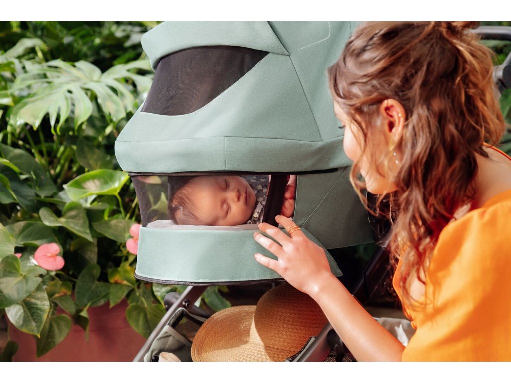 spoločne so sieťkou na strieške zabraňuje prehrievaniu dieťaťa v teplých letných