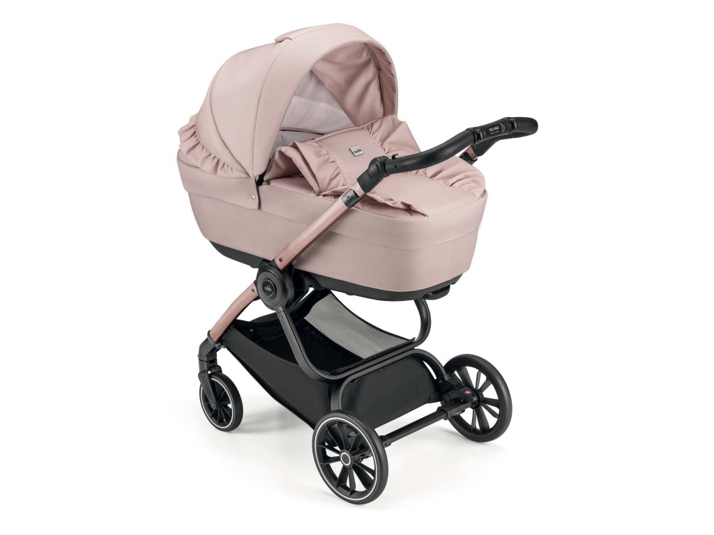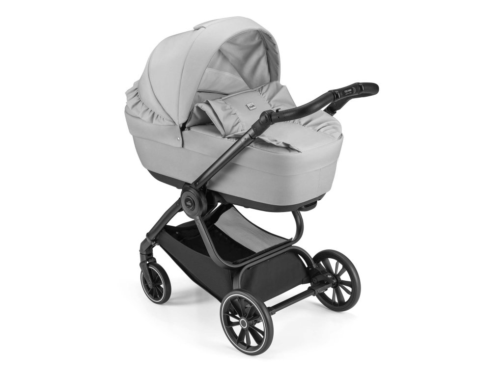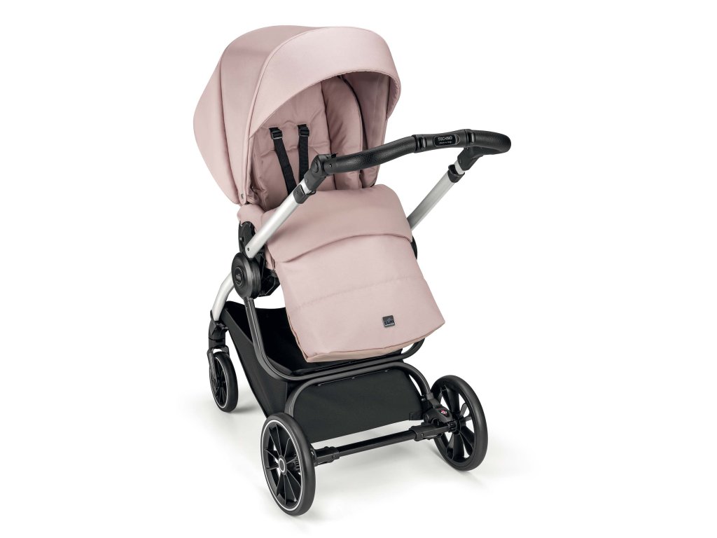 Podvozok Techno má odpruženú konštrukciu a praktické prídavné zariadenia, ktoré sa dajú ľahko nasadiť v oboch smeroch. O pohodlnú jazdu sa postarajú veľké zadné a predné kolesá s aretáciou. Navyše majú všetky ľahkú konštrukciu - sú vyrobené z materiálu EVA. Ich veľkou výhodou je, že sa nedajú prepichnúť. Takže sa na ne môžete stopercentne spoľahnúť, keď ste na cestách. Výškovo nastaviteľná rukoväť s ručným prešívaním z ekokože dopĺňa tento štýlový a praktický kočík. Počas jázd alebo výletov oceníte priestranný nákupný košík, do ktorého môžete umiestniť potraviny alebo všetky potrebné veci. Podvozok kočíka sa navyše ľahko skladá. V zloženom stave je veľmi kompaktný, samostatne stojí a vďaka hmotnosti len 7 kg sa s ním ľahko manipuluje.
