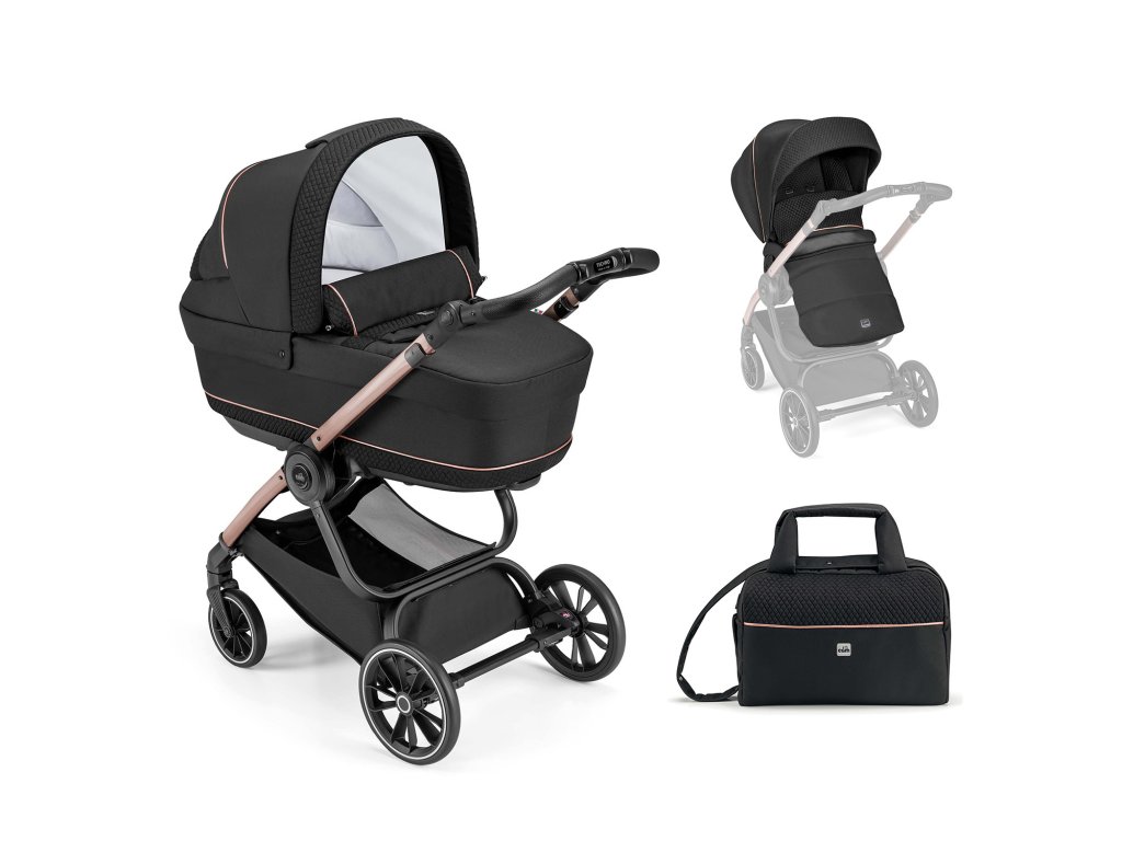 Praktická súprava obsahuje podvozok, hlbokú sedačku a športovú nadstavbu. Všetko v elegantnom čiernom prevedení. Vďaka setu môžete svoj novorodenecký kočík ľahko premeniť na športový kočík do mesta.