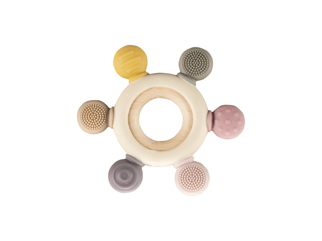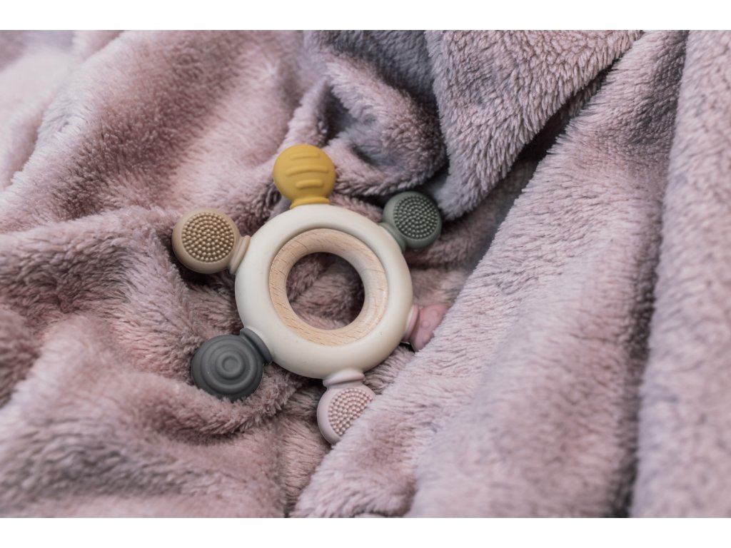 hryzie a stimuluje namáhané a citlivé ďasná počas rastu zubov. Rôzne textúry
