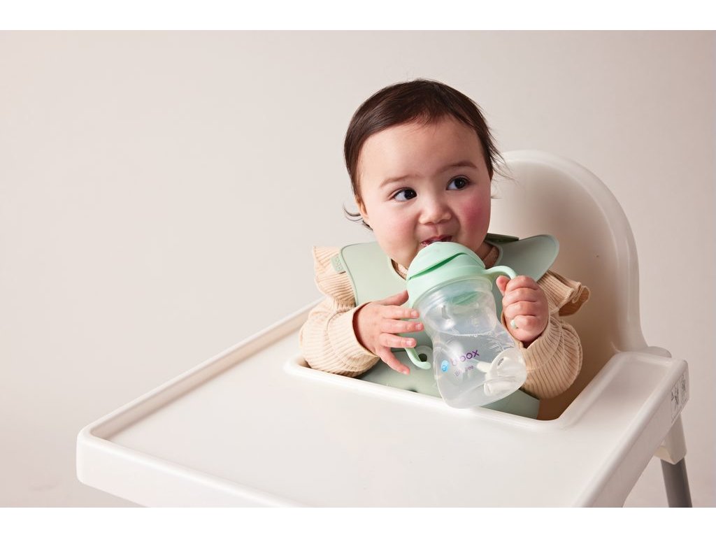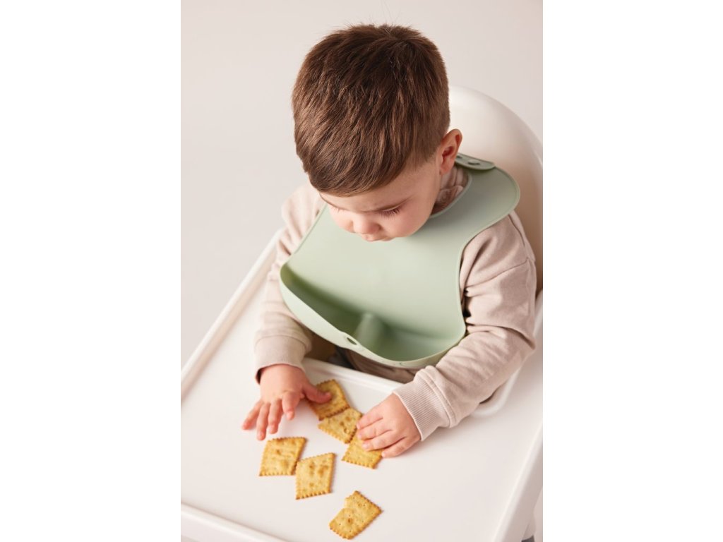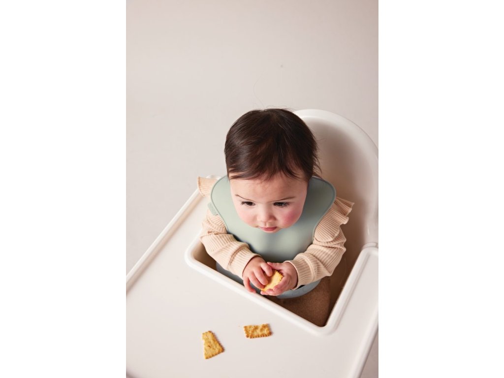 Hluboká otevřená kapsa silikonového bryndáku australské značky b.box je konstrukčně navržená tak, aby se zachycené jídlo z bryndáku nevysypalo. Bryndák je vyroben z netoxického potravinářského silikonu, který je přirozeně nepřilnavý a povrch zůstává hladký, i když je mokrý. Snadno se tak čistí a lze mýt i v myčce.