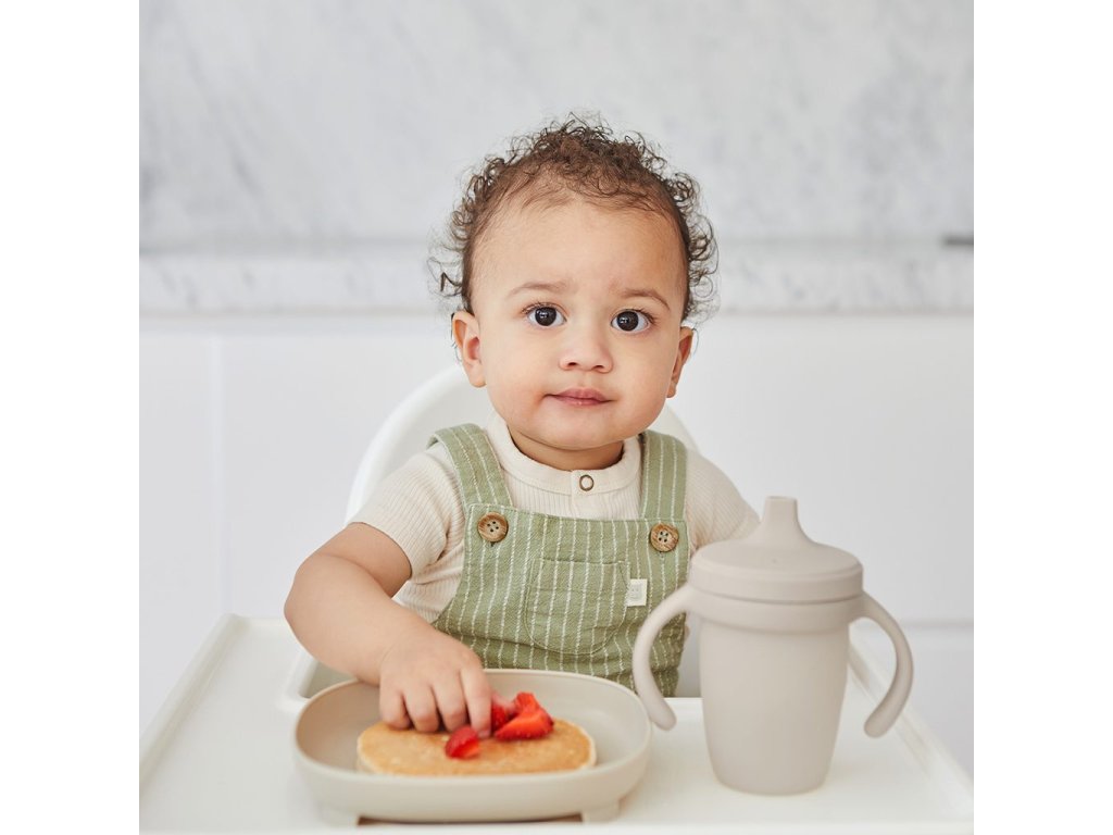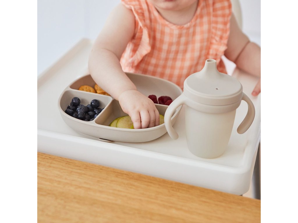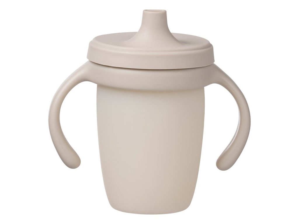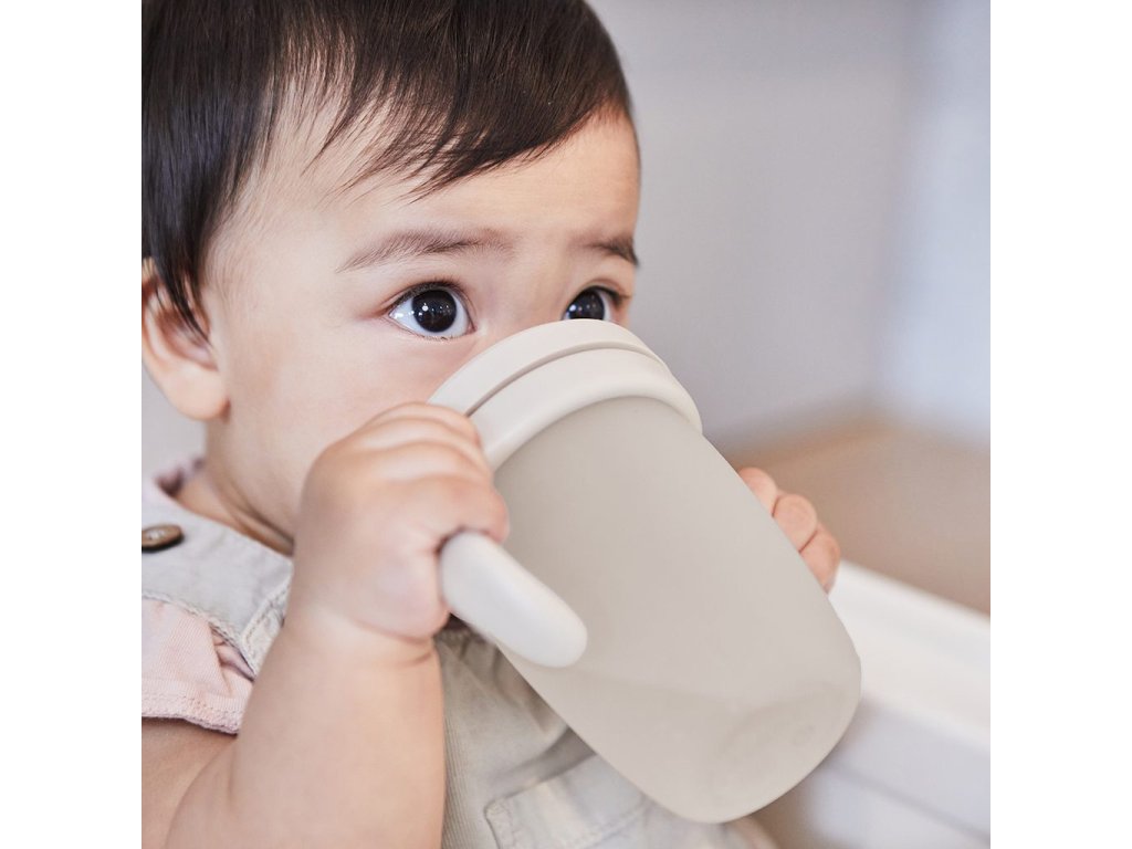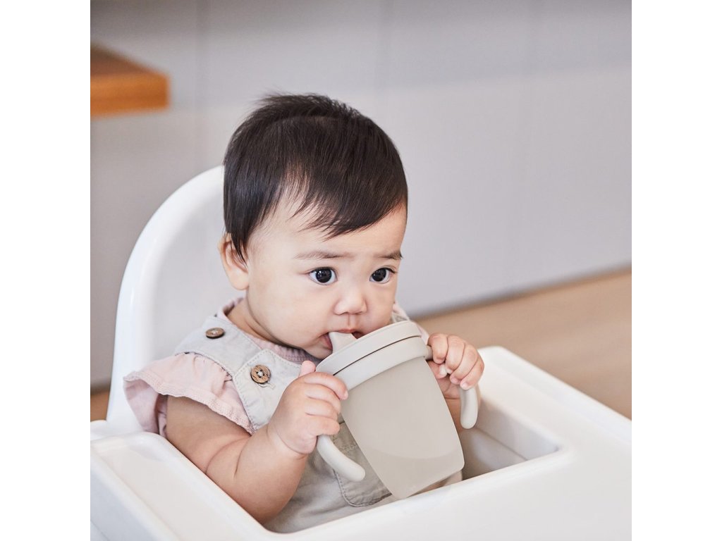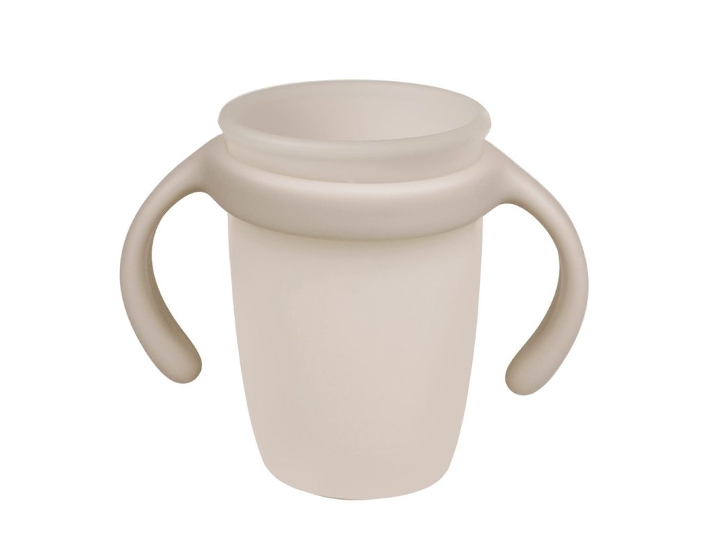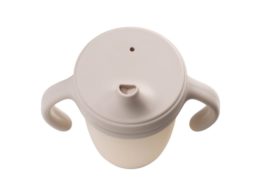 Silikonové víčko s pítkem, které neprotéká, pomáhá předcházet nechtěnému rozlití. Průhledný kelímek umožní rodičům sledovat hladinu tekutiny a pitný režim dítěte. Odnímatelné víčko a rukojeti se přizpůsobí věku a potřebám dítěte.