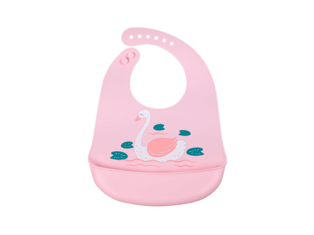 Podbradník vyrobený z mäkkého a na dotyk príjemného silikónu, nedráždi detskú pokožku.