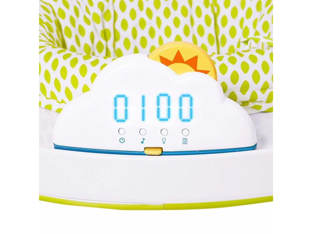 - osvetlený obláčik odmeňuje dieťatko farebnými svetlami a zvukmi: 4 zábavné zvukové efekty