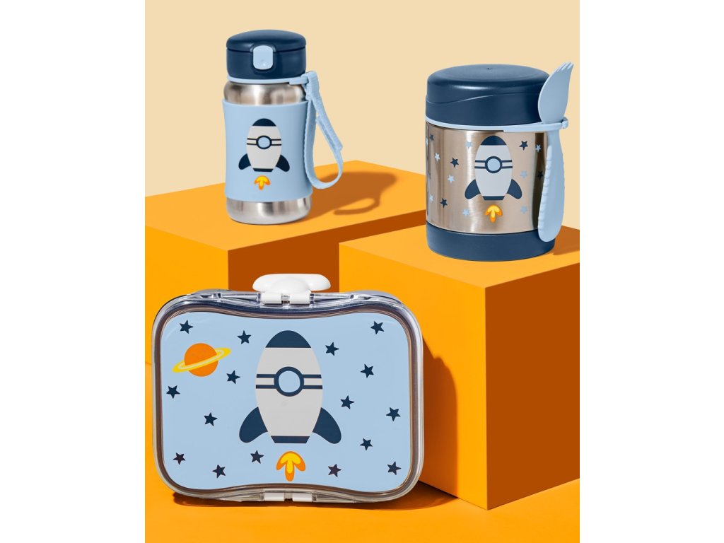 SKIP HOP Spark Style Fľaša so slamkou na vodu nerez Raketa 12m+