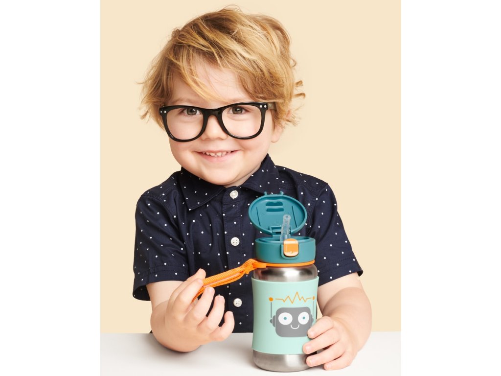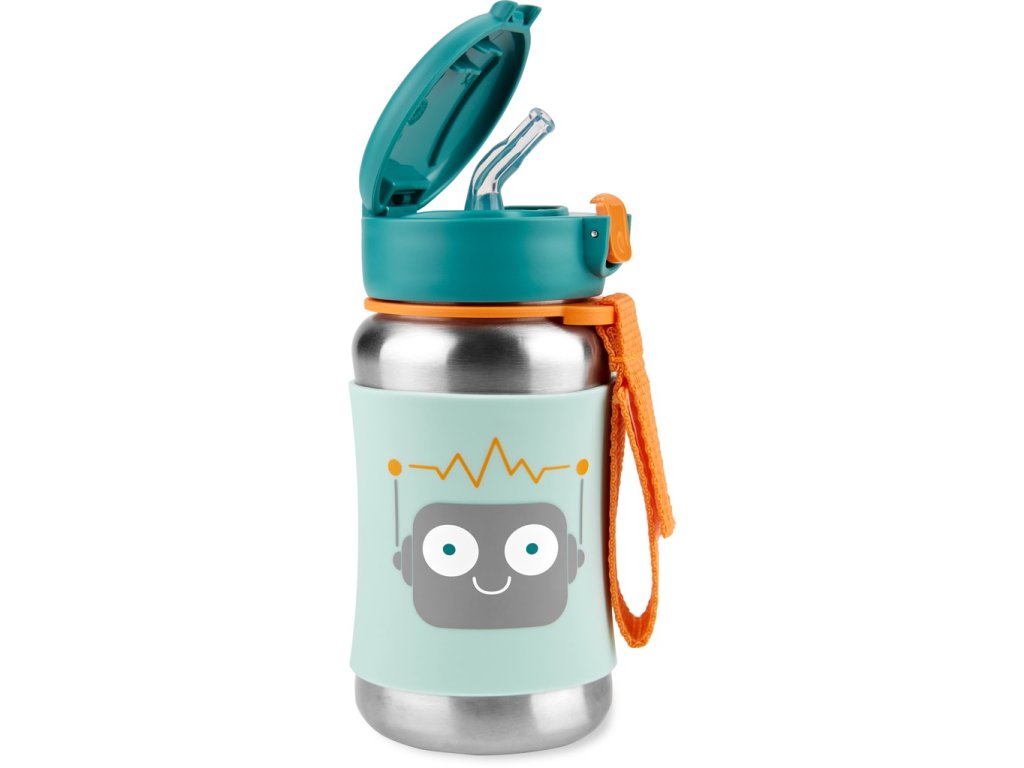 SKIP HOP Spark Style Fľaša so slamkou na vodu nerez Robot 12m+