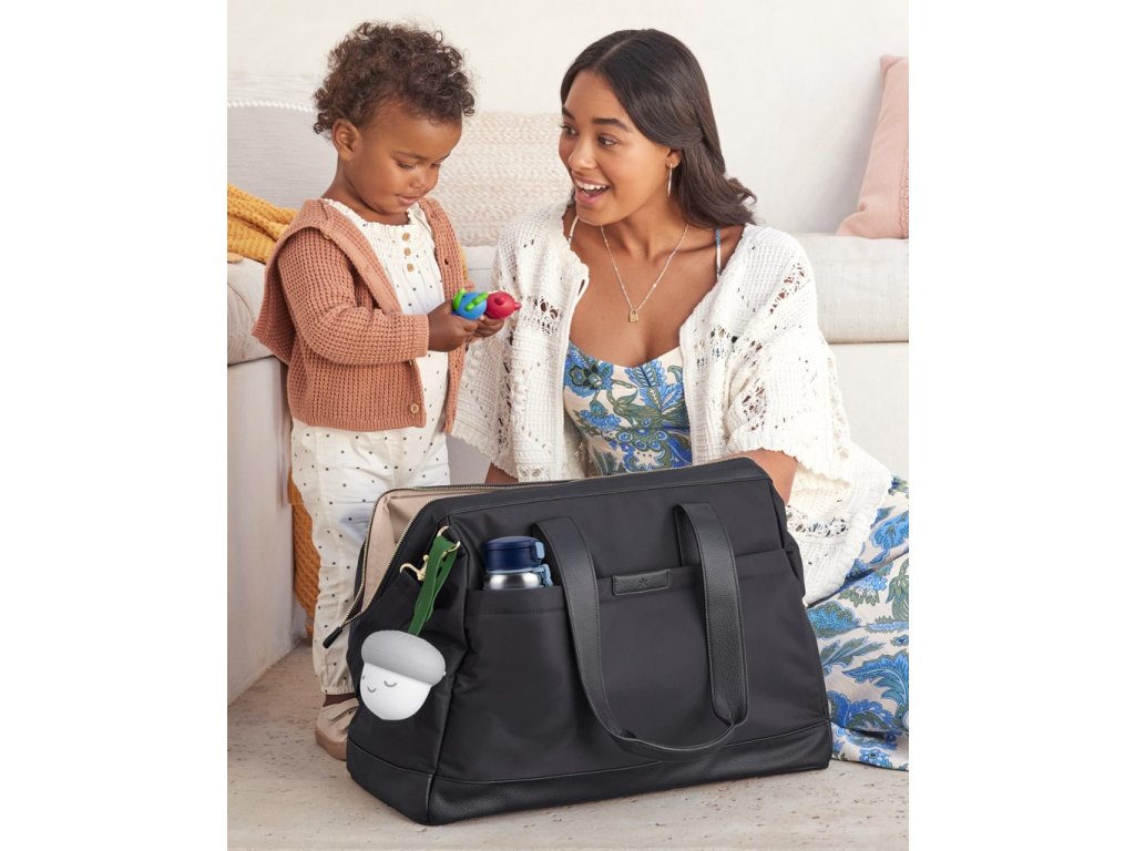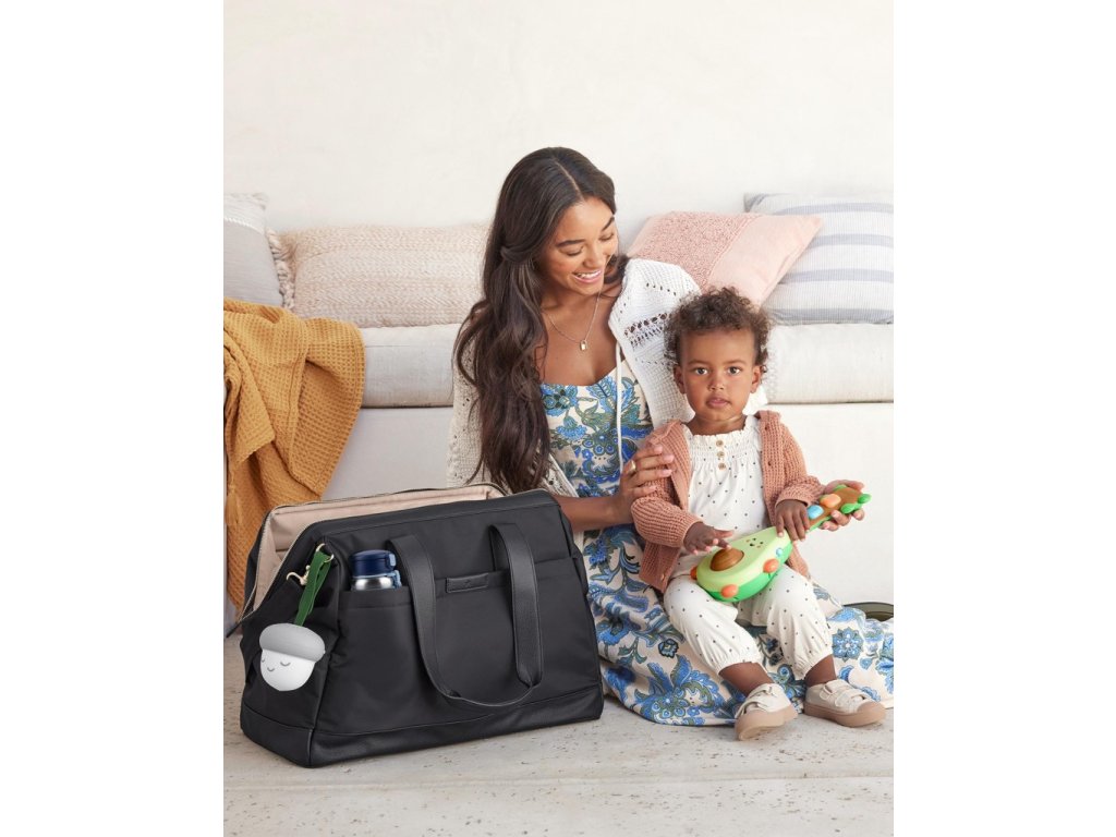 - nastaviteľný silikónový popruh na pripevnenie ku kočíkom, postieľkam, taškám na plienky a iným zariadeniam