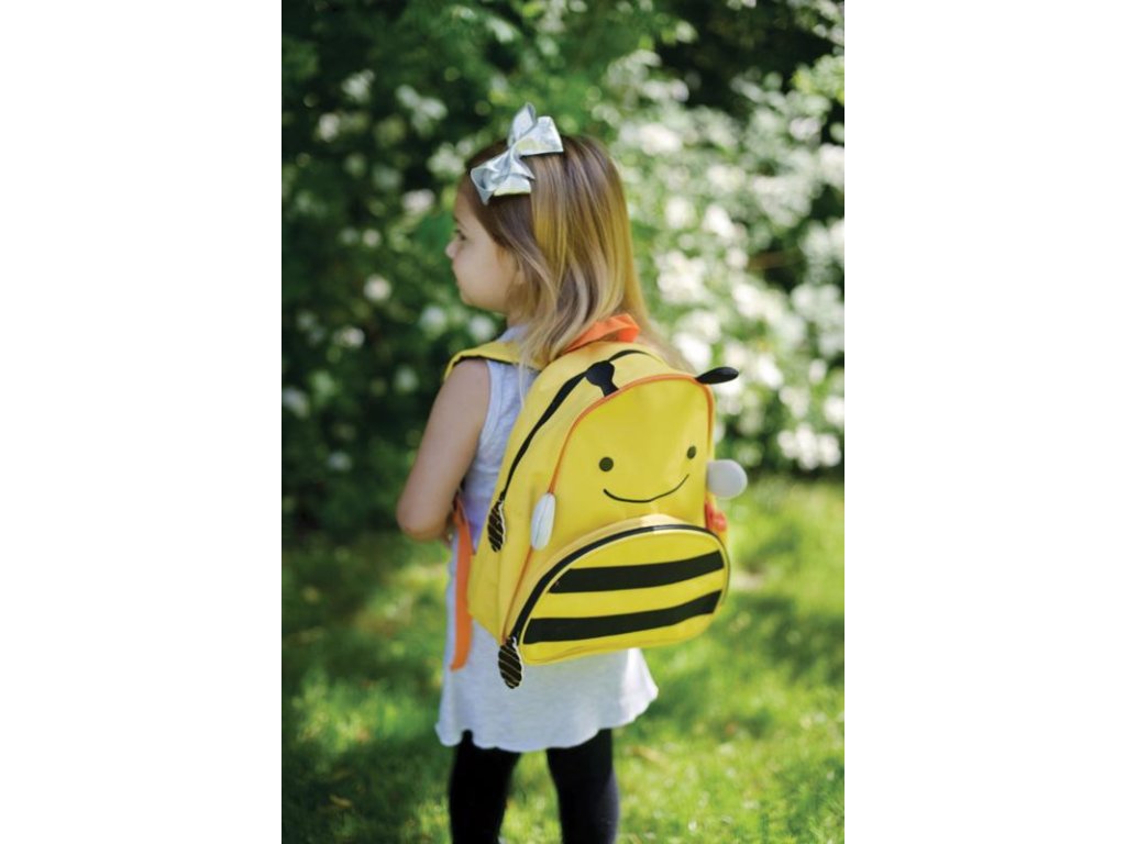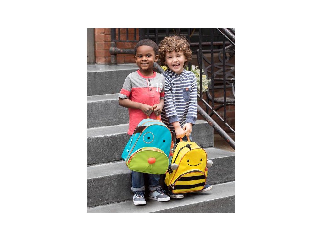Krásny batôžtek v štýle SKIP HOP. Prepracované detaily batôžku ladia s veselými motívmi na zipse. Predné oddelená vrecko ideálne na desiatu s extra vreckom na pastelky a pre ďalšie nevyhnutnosti na cesty. Priestranná postranné sieťované vrecko na pitie. Pohodlné nastaviteľné polstrované ramenné popruhy. Ucho pre prenášanie. Jednoduchá údržba.