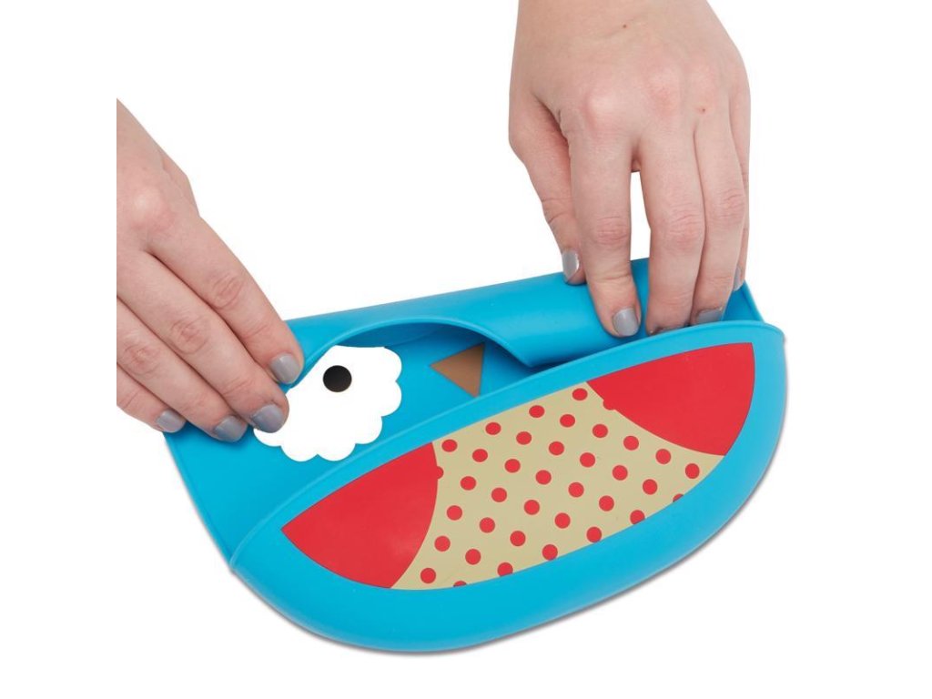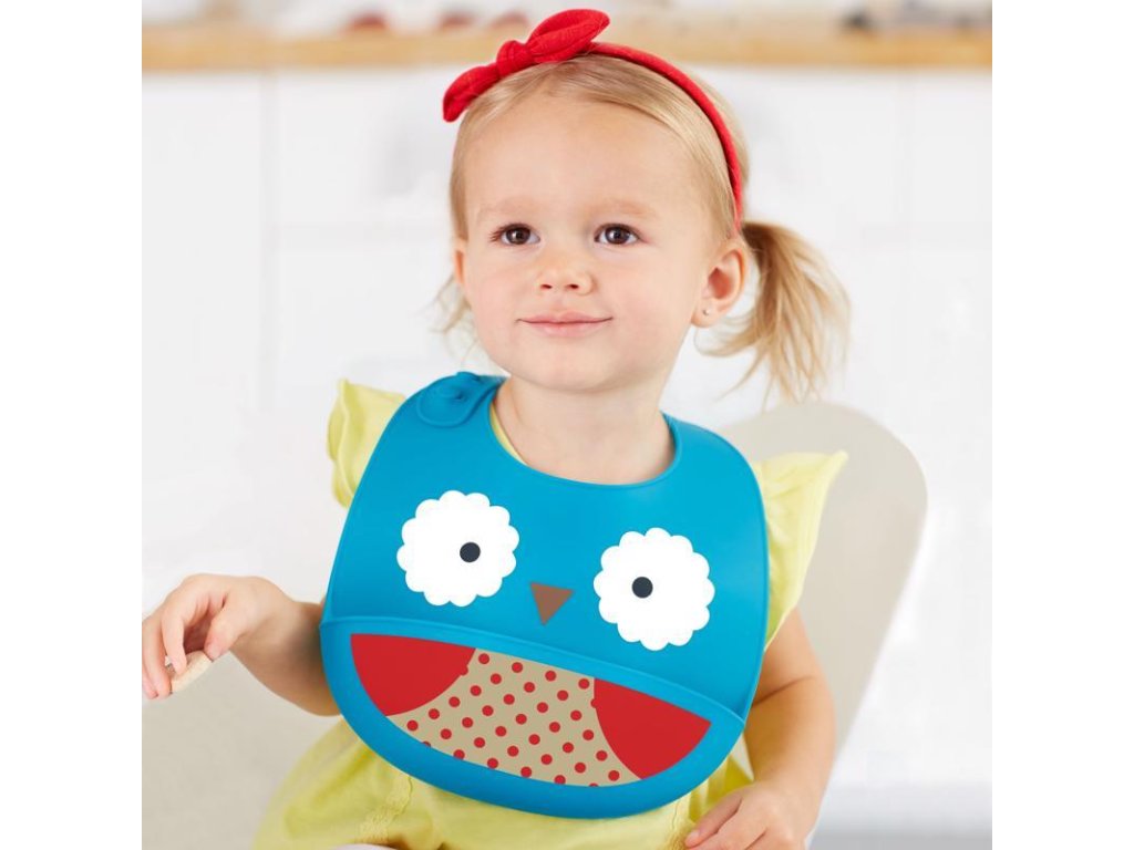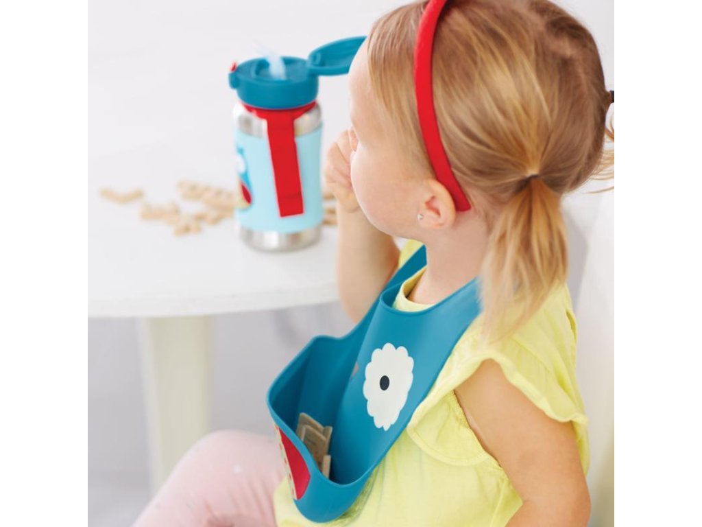 Silikónový podbradník Skip Hop z kolekcie Zoo v tvare zvieratka. Podbradník zachytí padajúce jedlo od nezbedných jedákov.