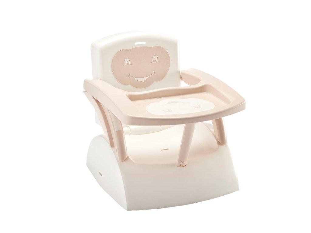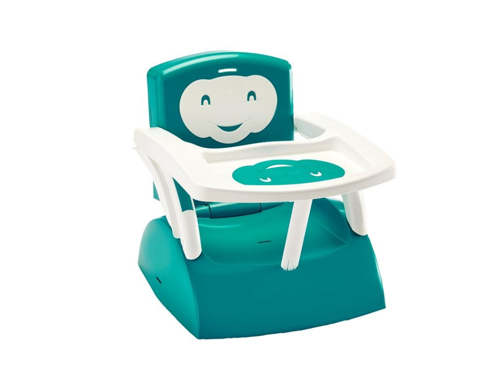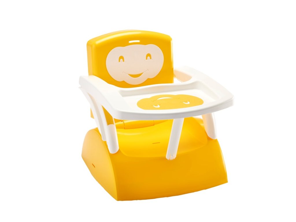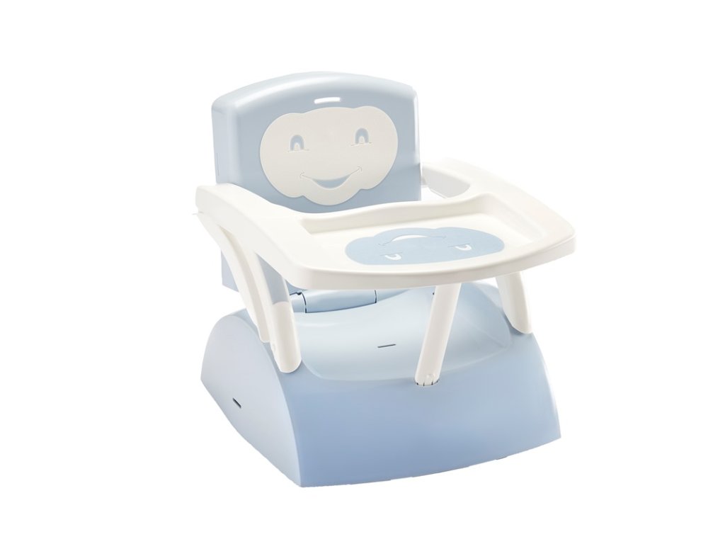Ľahká skladacia stolička s hracím alebo jedálenským pultíkom rastie spolu s dieťaťom. Vďaka svojej univerzálnosti ju ľahko zmeníte na kresielko pre vaše dieťatko. Stolička môže stáť buď na zemi, alebo ju s pomocou systému pásov, schovaných vo vnútri stoličky, pripevníte ku klasickej stoličke.