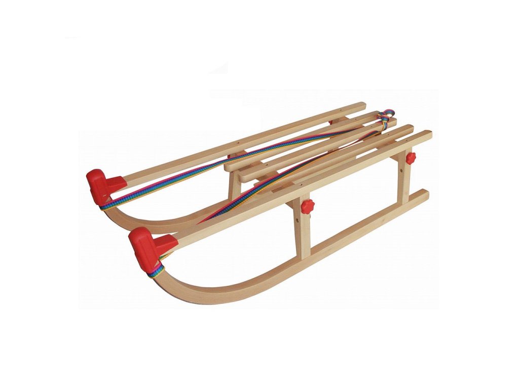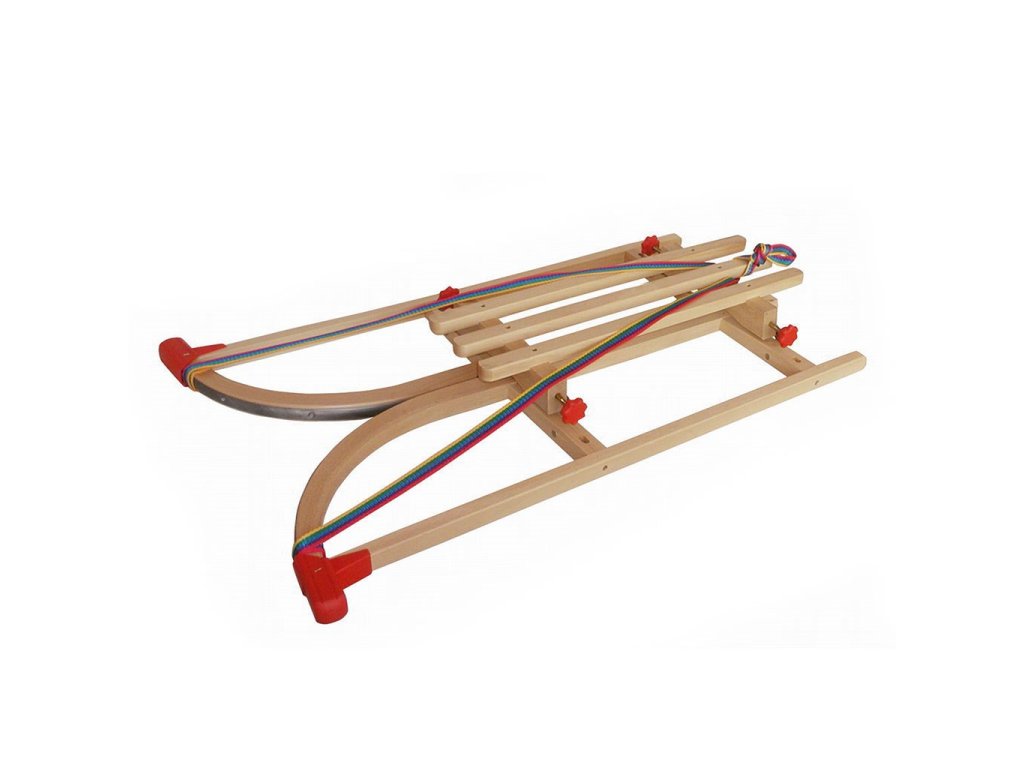 Pevné a odolné drevené skladacie sane so zosilnenou konštrukciou sú vyrobené z bukového dreva a natreté bezfarebným transparentným lakom, ktorý umožňuje drevu zachovať si stabilnú farbu a štruktúru. Vďaka patentovanému systému rýchleho a bezpečného skladania zaberajú sánky po zložení veľmi málo miesta (iba 9 cm na výšku). Koľajnice z nehrdzavejúcej ocele zvyšujú ich odolnosť a pohodlie počas jazdy. Predná časť saní je chránená špeciálnymi ochrannými krytmi. Sú vybavené ťahacou šnúrou. Vyznačujú sa vysokou trvanlivosťou a odolnosťou voči poškodeniu.