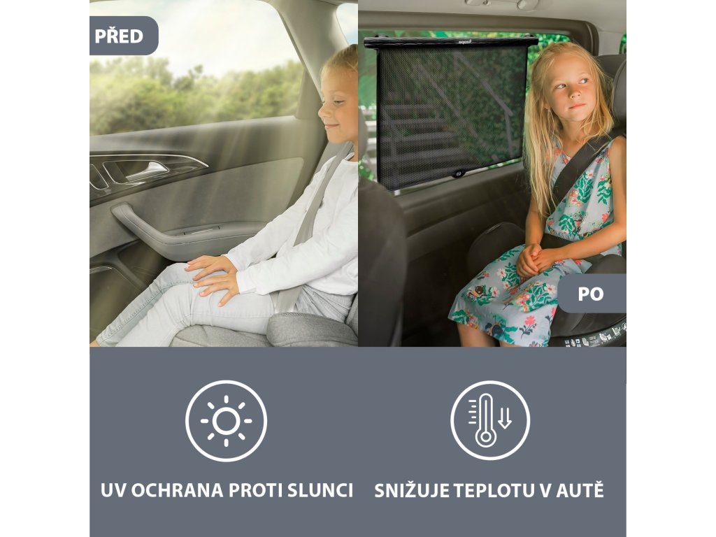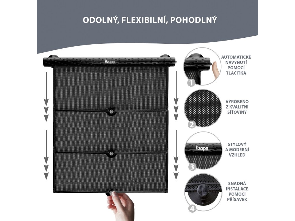 Minimalistický dizajn v čiernej farbe zaručuje, že slnečná clona zapadne do každého interiéru. Obsahuje prísavky na bezpečné umiestnenie na okno.