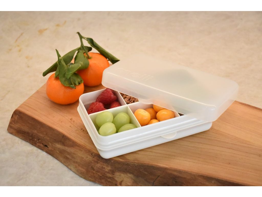 Krabička Snackle Box zajistí, že vaše oblíbené svačinky jsou pečlivě uspořádány a navíc snadno dostupné. Oddělené přihrádky zabránění nechtěnému míchání nebo pomačkání. Navíc odnímatelná přepážka umožní variabilitu krabičky a jinou kombinací uložení svačiny.