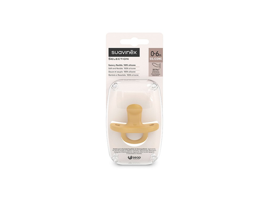 Mäkučký celosilikónový cumlík Colour essence sx pro od značky Suavinex v pastelových farbách - vyrobený z jedného kusu silikónu, s ergonomickým štítkom, ktorý sa prirodzene adaptuje s potrebami detí, bez chuti a bez zápachu.