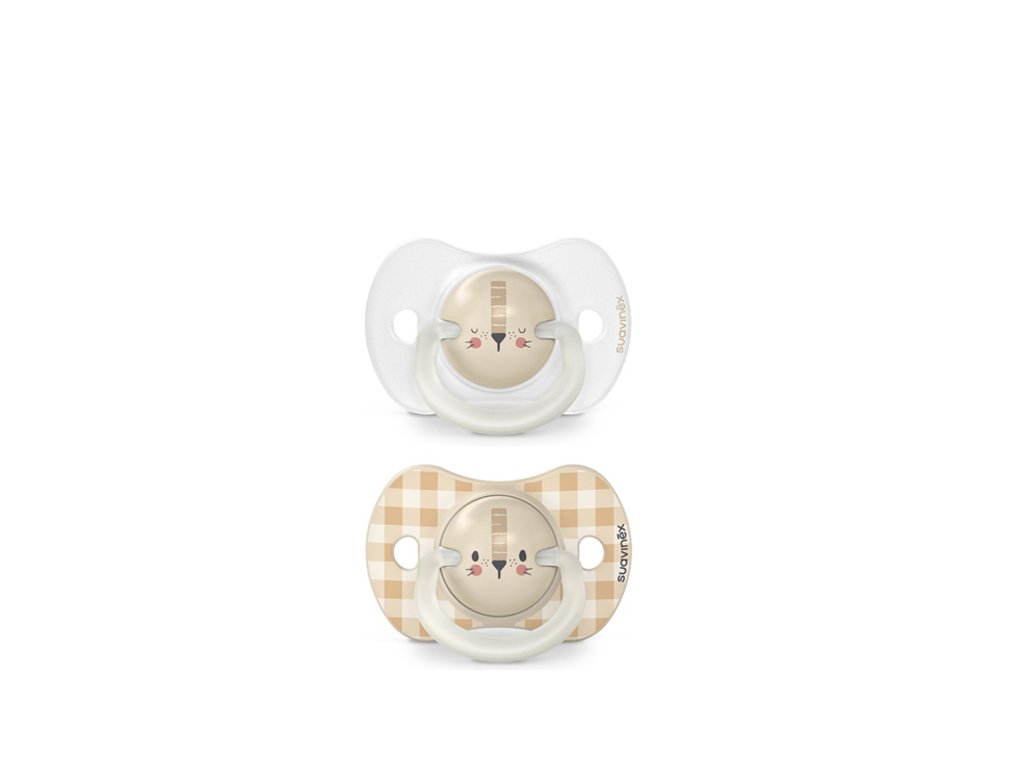 SUAVINEX | Cumlík DEN&NOC fyziologické silikón 6-18 m 2ks - ružový králik