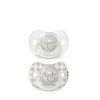 Je reverzibilný, preto sa nemusíte báť, že byste cumlík vložili do úst bábätka obrátene. Tenký krk cumlíka redukuje dráždivý kontakt medzi cumlíkom a rezákmi. Širšia čast cumlíka krásne prenáša tlak vyvíjaný na ďasná / zuby.