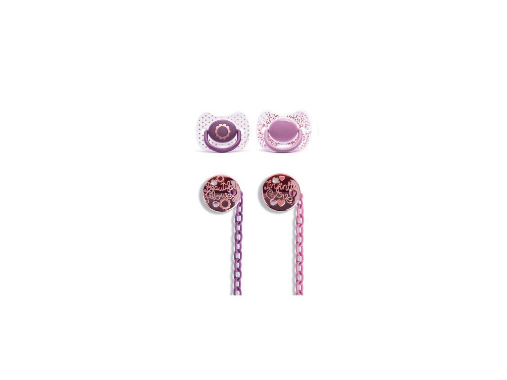 Set z kolekcie Haute Couture v podobe klipu a cumlíka v zladených farbách bude krásnym darčekom. Klip zabráni upadnutie či strate cumlíky. Nové prekrásne priezračné a nadčasové materiály Haute Couture - "Life is golden" fľaše, cumlíky a klipy na cumlíky nesú prvky kombináciou s nadčasovými materiálmi a detailmi inšpirovanými poslednými trendmi v šperkárstve. Priesvitnosť, pozlátený povrch a nádherné zlaté aplikácie rady Premium Vás uchvátia! Zlaté odtiene vytvárajúce originálne osobité vzory kombinovateľné spolu s klipmi a dojčenskými fľašami radu Haute Couture. Môžete vyberať z niekoľkých dekorov ladiacich vzájomne v radoch.