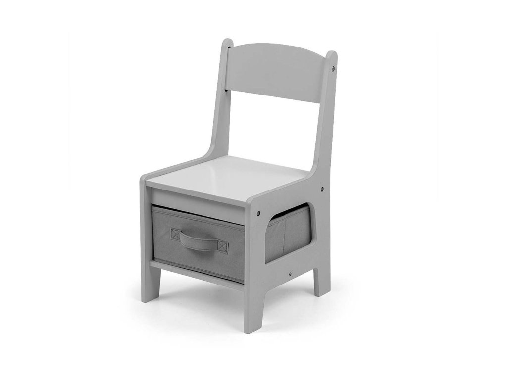 Súprava multifunkčného nábytku pre deti. Stôl SVEN s 2 stoličkami v bielej a sivej farbe so sivými doplnkami je vyrobený tak, aby deťom poskytoval: pohodlie, priestor na tvorivú hru, maľovanie, písanie a maximálne pohodlie počas aktivít. Súprava obsahuje 2 stoličky s 2 textilnými úložnými pomôckami zasunutými do poličky pod stoličkami. Stôl je vybavený obrovským úložným priestorom umiestneným pod obojstrannou odnímateľnou doskou. Má aj bočné úložné poličky. Na jednej strane stolovej dosky sa nachádza veľká kresliaca doska. Stoličky sú ľahké a deti s nimi môžu voľne pohybovať. Nábytok je vyrobený s výnimočnou precíznosťou a starostlivosťou. Obe stoličky majú zaoblené rohy, ktoré chránia dieťa pred zranením. Všetky prvky konštrukcie stola a stoličiek zabezpečujú vysokú stabilitu a minimalizujú riziko pádu. Súprava Sven je vyrobená z MDF je odolná a ľahko sa udržiava. Súprava nábytku sa ľahko zostavuje a všetky komponenty potrebné na montáž sú súčasťou balenia.