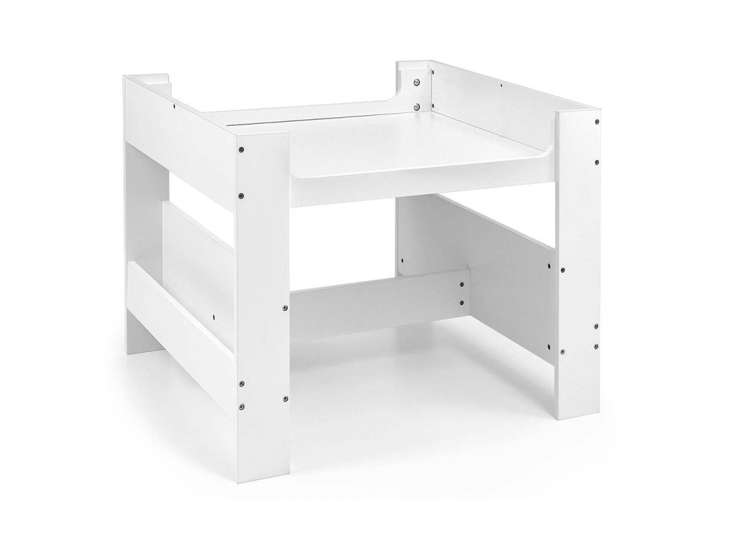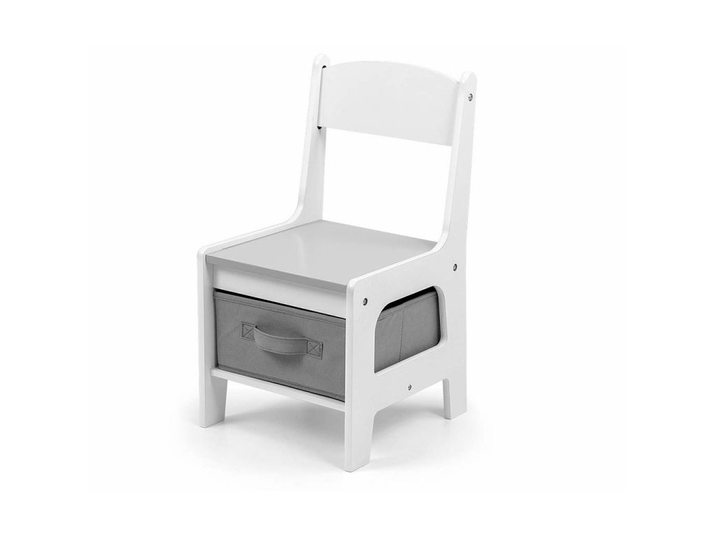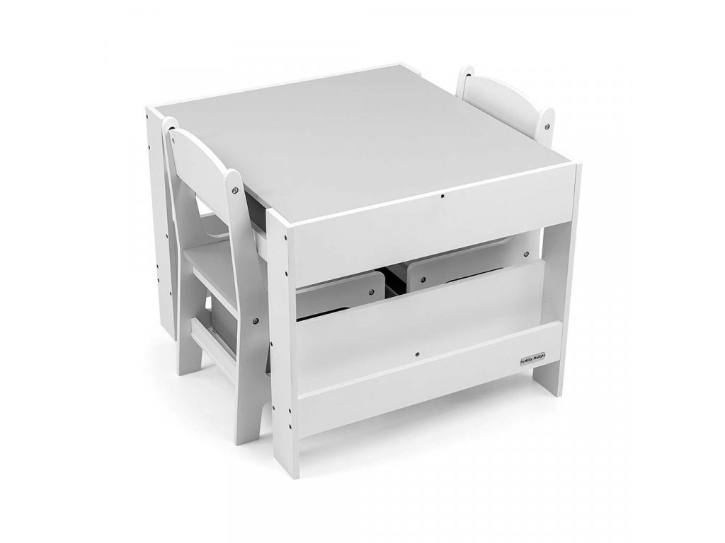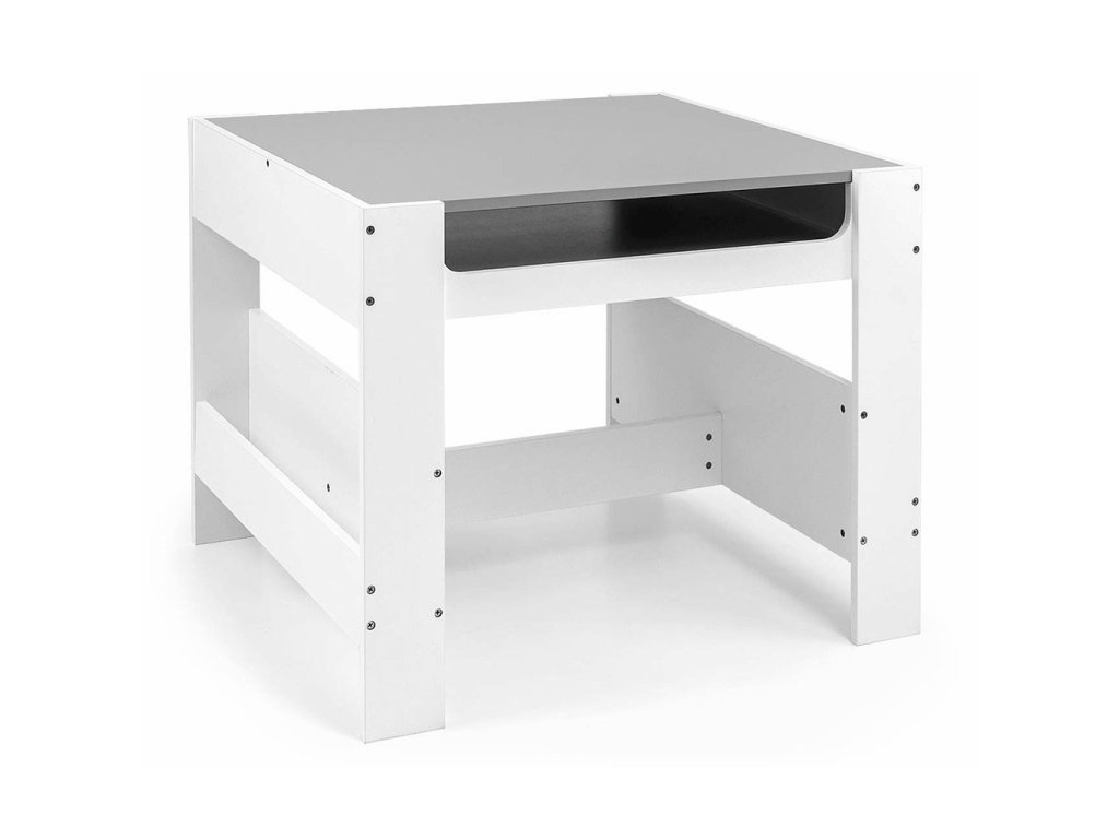 Súprava multifunkčného nábytku pre deti. Stôl SVEN s 2 stoličkami v bielej a sivej farbe so sivými doplnkami je vyrobený tak, aby deťom poskytoval: pohodlie, priestor na tvorivú hru, maľovanie, písanie a maximálne pohodlie počas aktivít. Súprava obsahuje 2 stoličky s 2 textilnými úložnými pomôckami zasunutými do poličky pod stoličkami. Stôl je vybavený obrovským úložným priestorom umiestneným pod obojstrannou odnímateľnou doskou. Má aj bočné úložné poličky. Na jednej strane stolovej dosky sa nachádza veľká kresliaca doska. Stoličky sú ľahké a deti s nimi môžu voľne pohybovať. Nábytok je vyrobený s výnimočnou precíznosťou a starostlivosťou. Obe stoličky majú zaoblené rohy, ktoré chránia dieťa pred zranením. Všetky prvky konštrukcie stola a stoličiek zabezpečujú vysokú stabilitu a minimalizujú riziko pádu. Súprava Sven je vyrobená z MDF je odolná a ľahko sa udržiava. Súprava nábytku sa ľahko zostavuje a všetky komponenty potrebné na montáž sú súčasťou balenia.