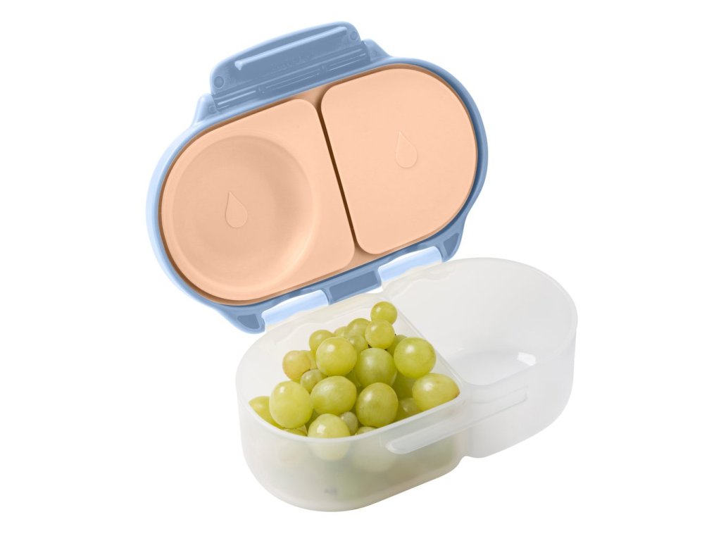Svačinový box od b.box vám zjednoduší a zpříjemní čas na svačinu nebo přesnídávku. Díky jeho velikosti ho můžete vzít prakticky kamkoliv a být tak vždy vyzbrojení až na bříška zaútočí hlad. Díky flexibilnímu víčku na jedné straně můžete do krabičky vložit celý kus ovoce a do druhé třeba i jogurt nebo pyré.