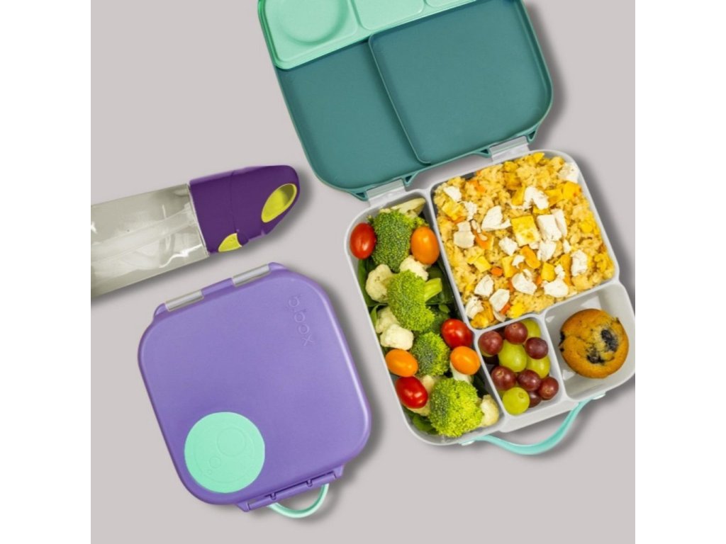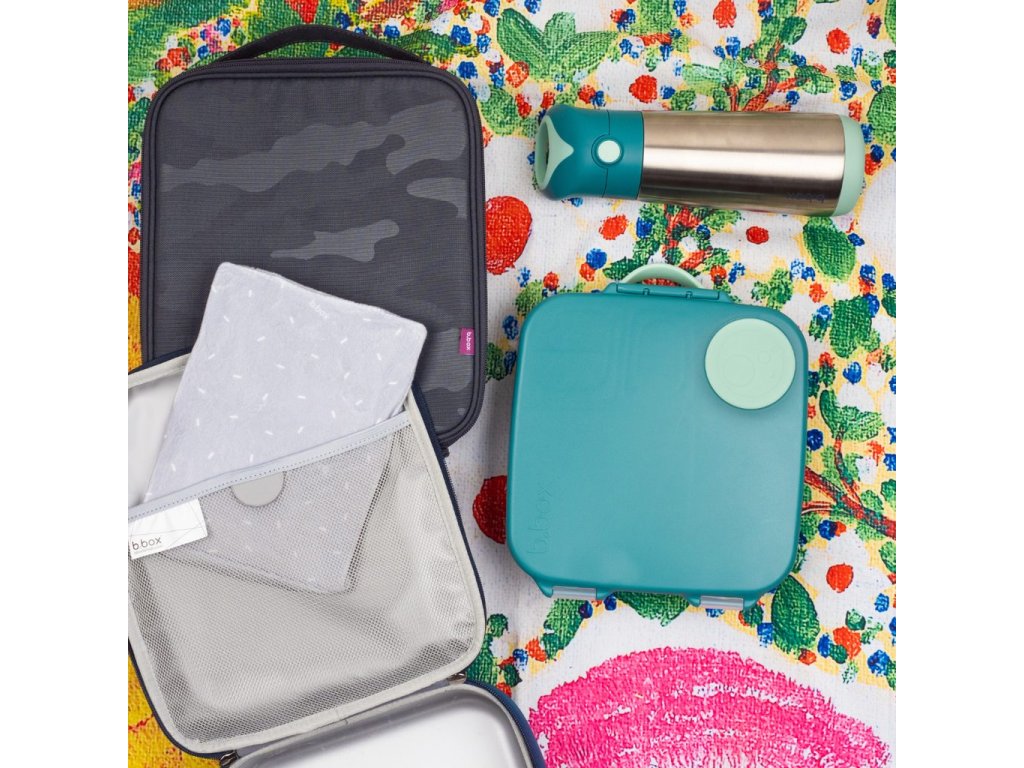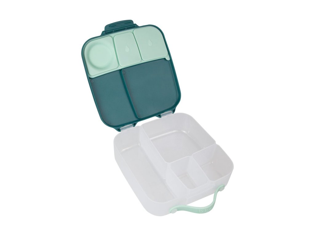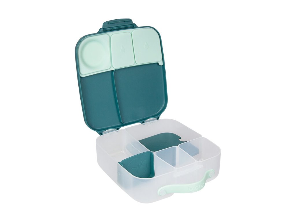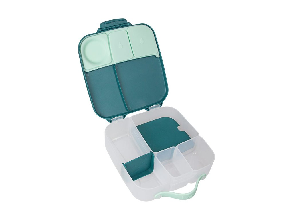 Krabička na svačinu, do které se vejde úplně všechno! Děti si během dne rády vybírají z dobrot, které jim připravíte. A tak b.box navrhl variabilní lunchbox, do kterého zabalíte nespočet různých druhů svačinek. Najdete zde oddělení pro půl krajíce chleba nebo sendvič, pod pohyblivým víčkem je ukrytý chladivý polštářek, který udrží tuto dobrotu déle čerstvou. Pokud pohyblivé víčko odstraníte, máte rázem dostatečně velký prostor pro těstoviny nebo salát. Naprosto jedinečné zpracování víčka krabičky s elastickým kroužkem umožní vložit do krabičky celé jablko! Silikonové dvojité víčko pak umožní skladovat v menších odděleních ovoce nebo jogurt (nikoli tekutiny). Některé vitřní "přepážky" jsou vyjímatelné a nastavitelné, takže si tento svačinový box přestavíte podle svých chutí a potřeb. Do lunchboxu se vejde i wrap nebo banán.