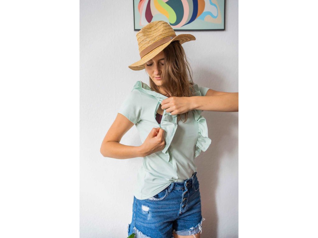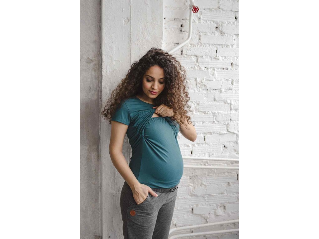 Tehotenské a dojčiace tričko Milk Shirt milk & love s výstrihom do V. Tričko, ktoré uľahčí dojčenie je vyrobené z kvalitnej bavlny s prídavkom elastanu, vďaka ktorému sa nevyťahuje a po vypraní sa vracia do pôvodného tvaru. Preto vyzerá skvele aj po tehotenstve a je možné ho používať aj pri dojčení. Jednoduché otváranie "slučkou" umožňuje veľmi rýchlo nakŕmiť hladné bábätko.
