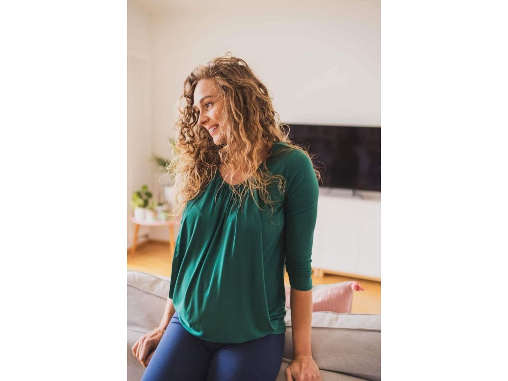 Pri výbere veľkosti sa riaďte veľkosťou, ktorú aktuálne nosíte. Oblečenie je vyrobené z elastickej látky, preto sa prispôsobí veľkosti tehotenského bruška a meniacim sa tvarom tela. Oblečenie sa meria naplocho, takže rozmery uvedené v tabuľke-(posledná fotografia) najlepšie porovnáte s rozmermi oblečenia, ktoré vám aktuálne sedí. Najkvalitnejšie priedušné látky, ktoré prešli prísnymi testami Oeko-Tex Standard 100. Vďaka nim je oblečenie mäkké a príjemné na dotyk pre mamičku aj dieťa. Zloženie: 92% bavlna, 8% elastan. Dĺžka rukávov 7/8.