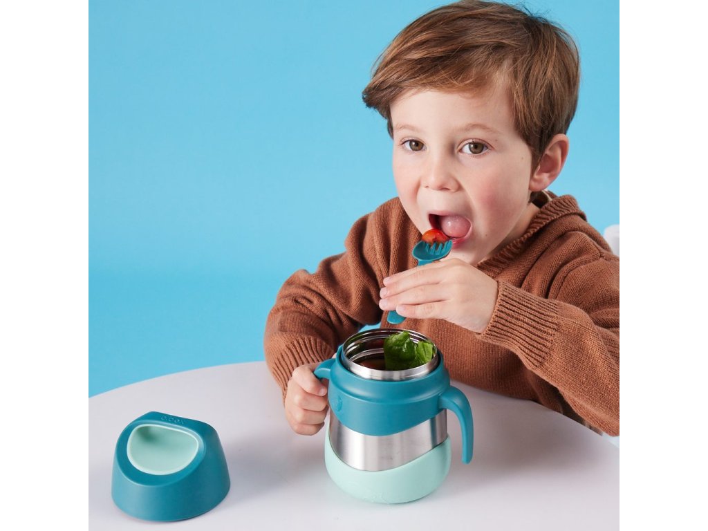 Široké hrdlo termosky umožní, aby malé ručičky dosáhly na poslední sousto na dně. Na víčku je "ouško", za které je možné termosku nosit nebo zavěsit na karabinu. Kromě toho je toto "ouško" skvělé i pro slabé nebo malé ruce - vložením prstů do otvoru a pootočením lze využít "páky" a tak je otevření snadné jak pro děti, tak i pro starší lidi. Ucha po stranách termosky i kryt chránící dno termosky z venku jsou odnímatelné. K termosce je možné dokoupit náhradní vidličko-lžičku.