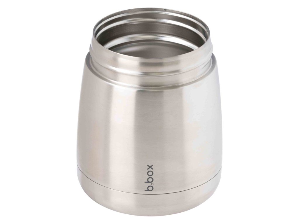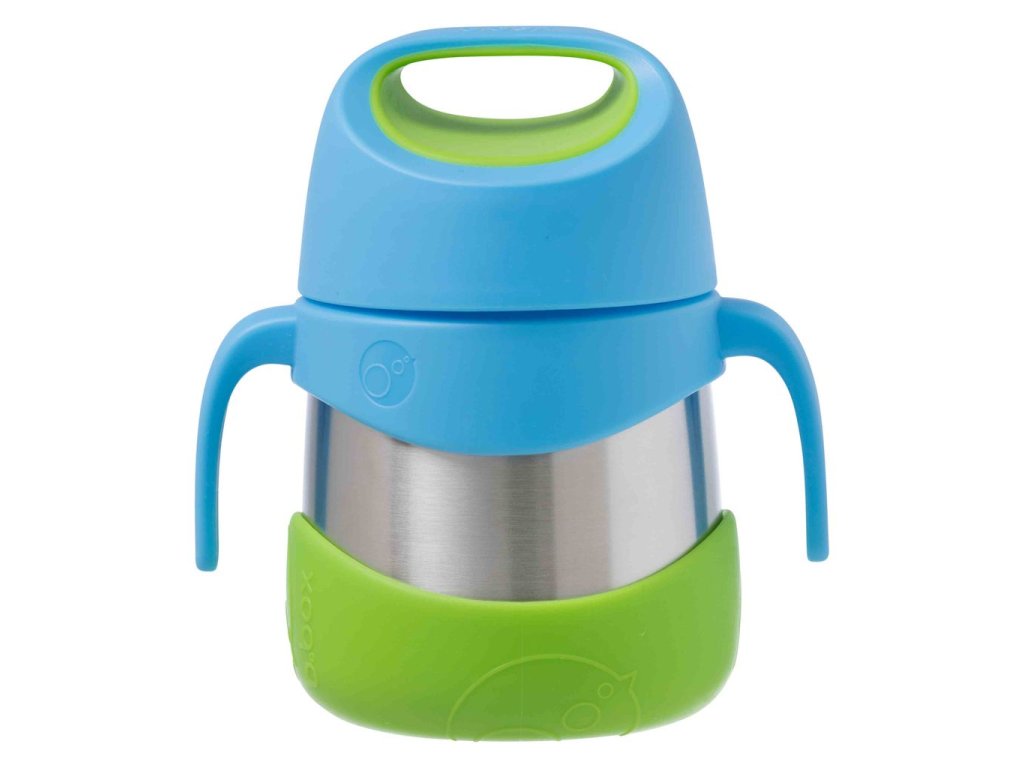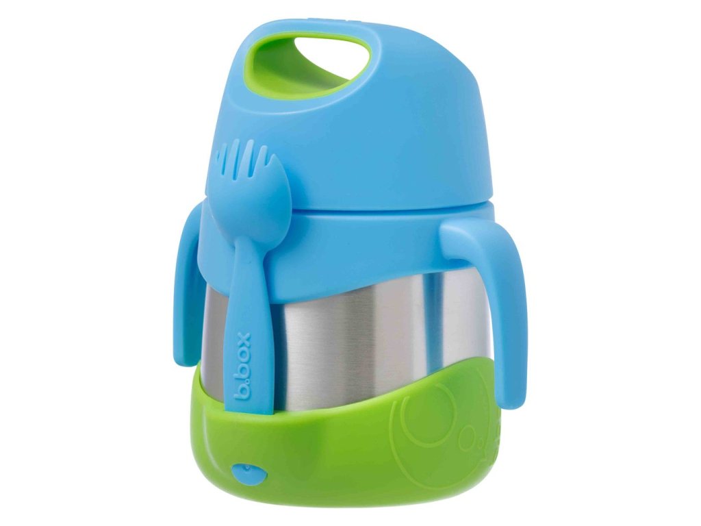 Dvouplášťová široká termoska, aby malé ručičky dosáhly na poslední sousto na dně. Na víčku je "ouško", za které je možné termosku nosit nebo zavěsit na karabinu. Kromě toho je toto "ouško" skvělé i pro slabé nebo malé ruce - vložením prstů do otvoru a pootočením lze využít "páky" a tak je otevření snadné jak pro děti, tak i pro starší lidi. Ucha po stranách termosky i kryt chránící dno termosky z venku jsou odnímatelné.