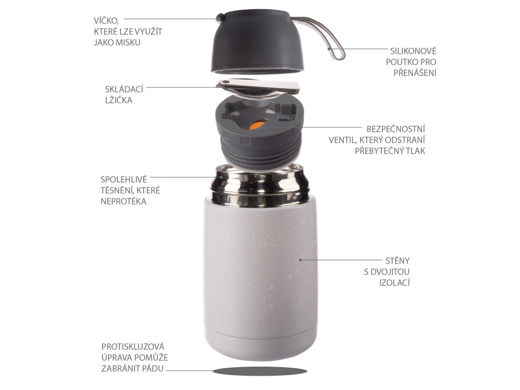 kdekoľvek dopriať horúcu kašu alebo polievku. Viečko termosky možno použiť ako